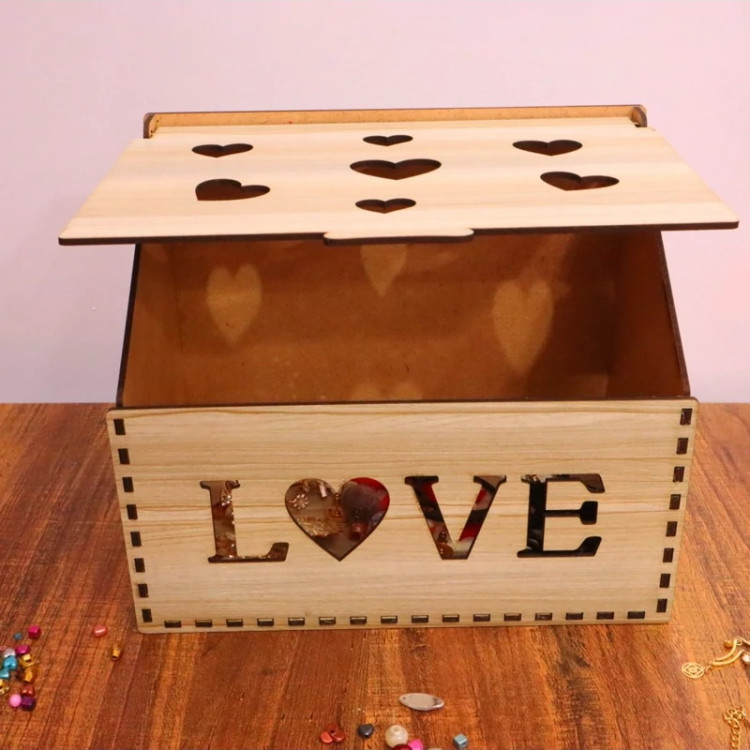 جعبه نگهداری زیورآلات و اکسسوری طرحLOVE، درب لولایی