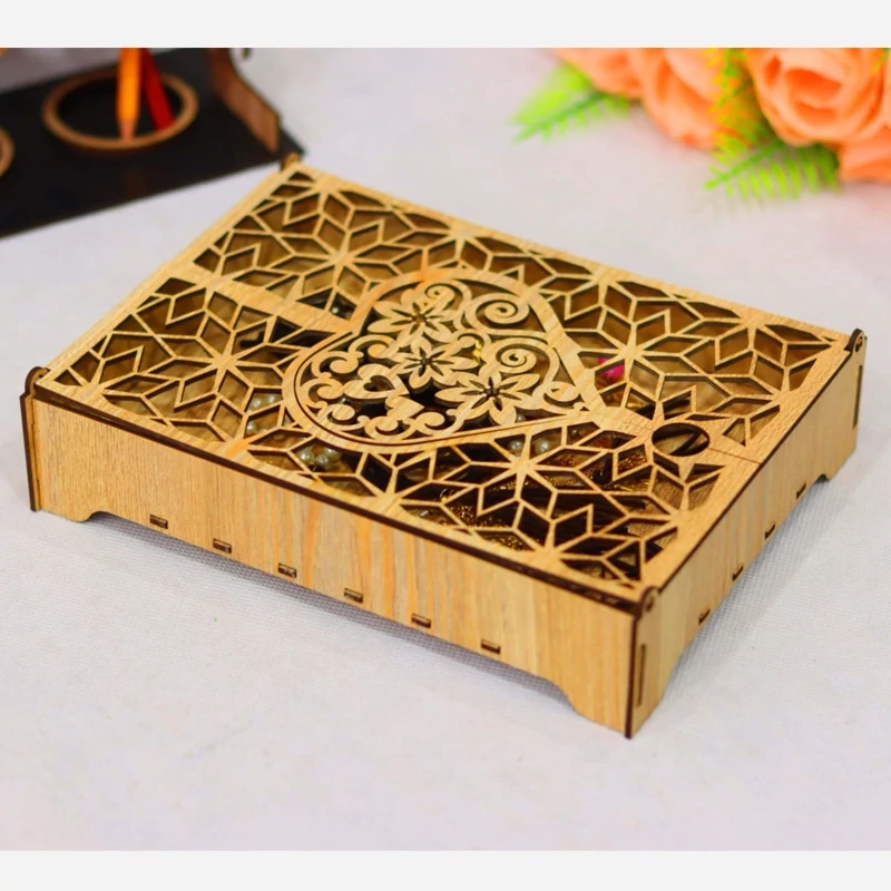 جعبه نگهداری زیورآلات طرح قلبی، درب لولایی و پایه دار