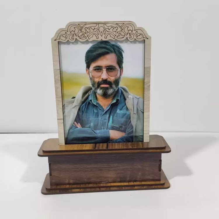 تندیس شهید آوینی ساخته شده با چوب mdf با ابعادی معمولی جهت استفاده روی میز کار، روی میز تلویزیون و حتی مناسب هدیه دادن