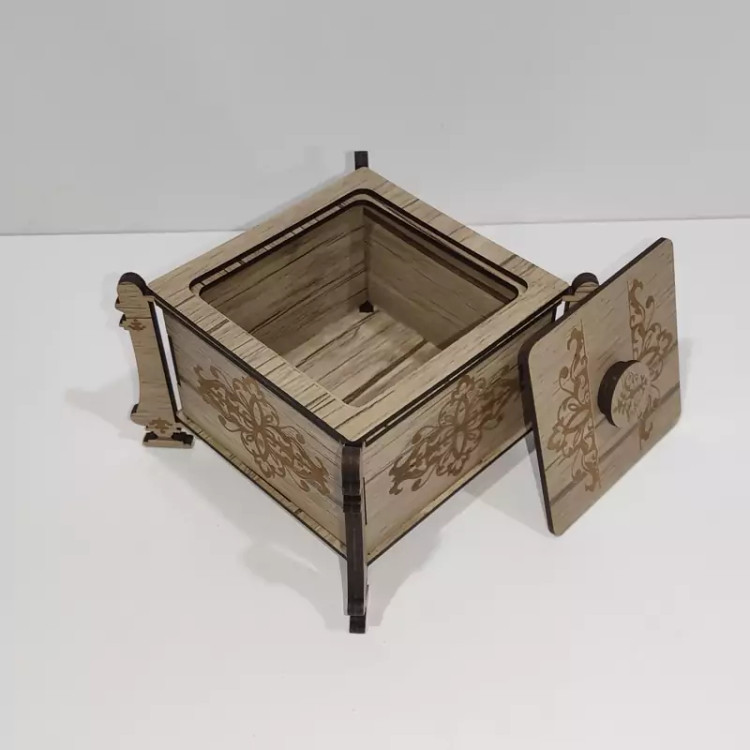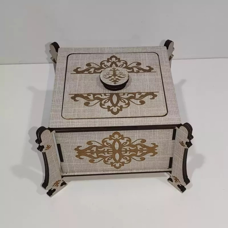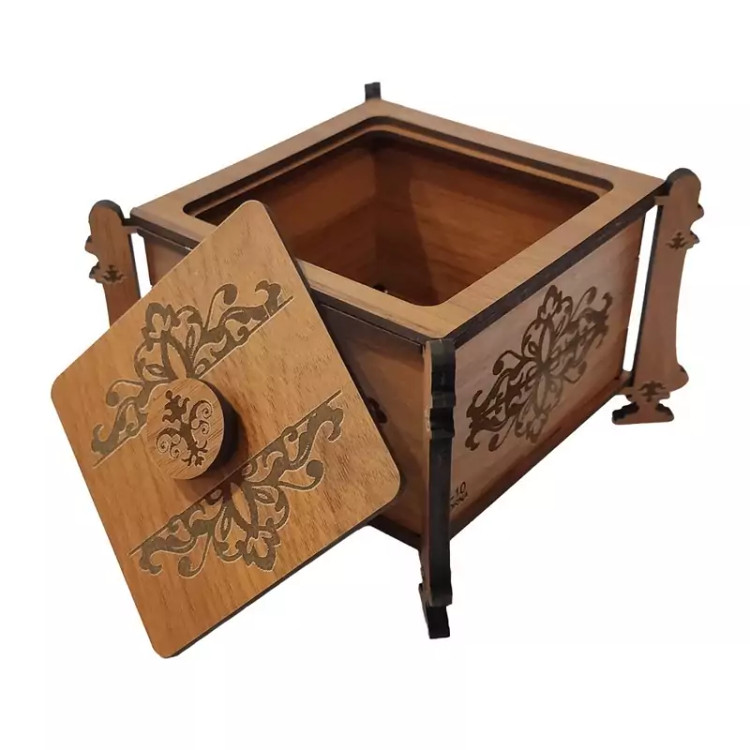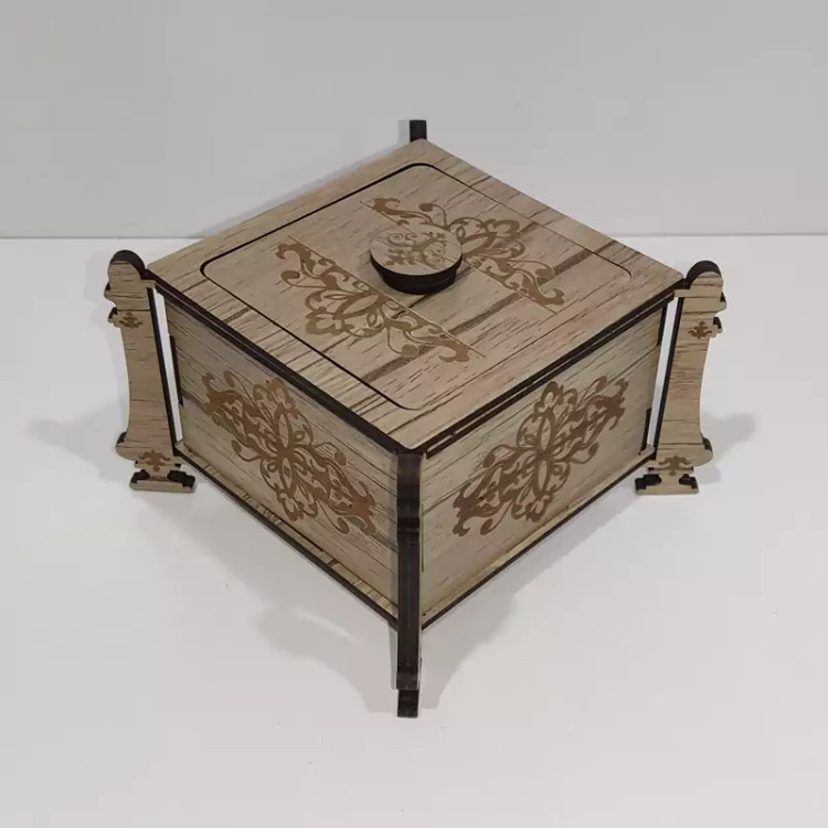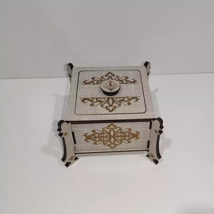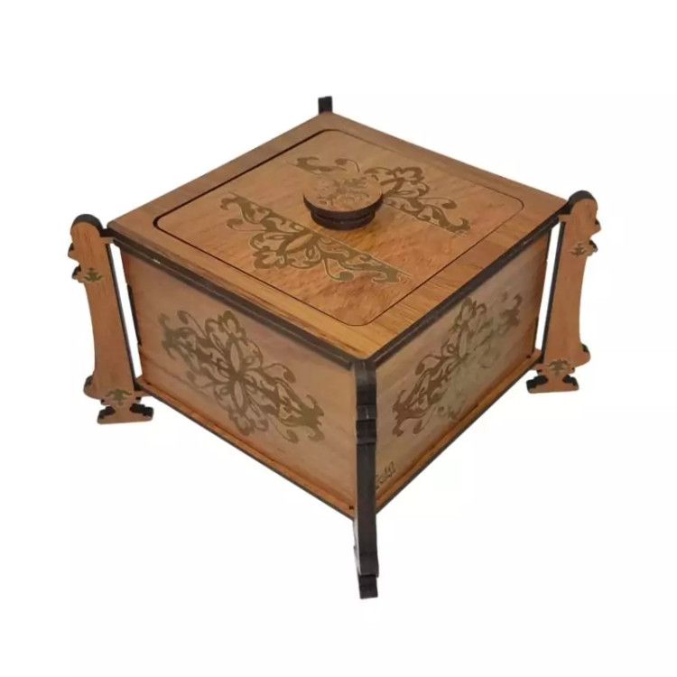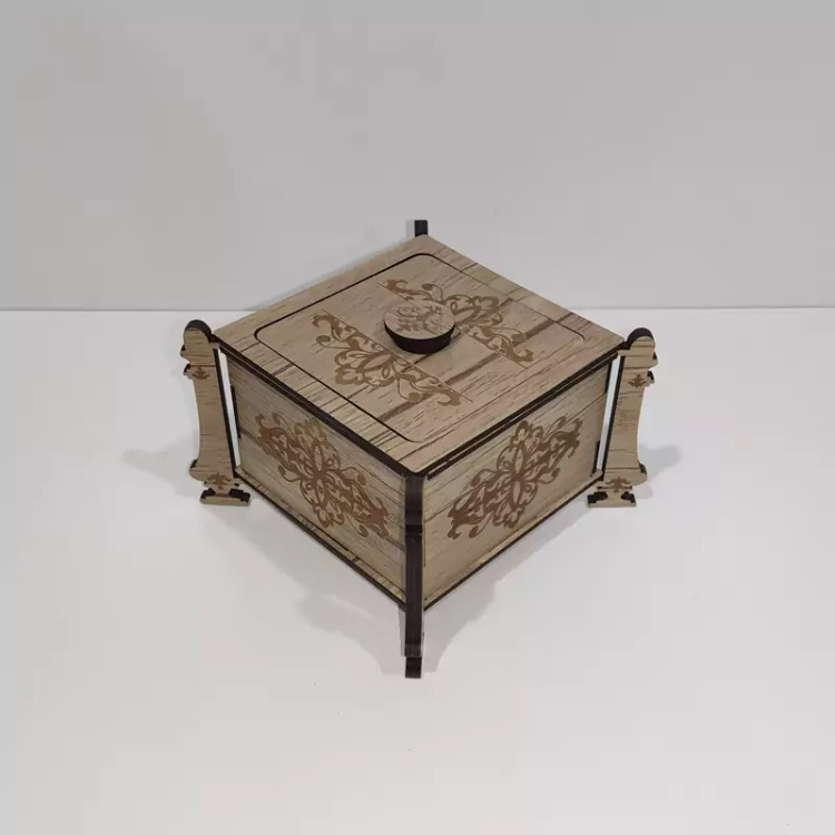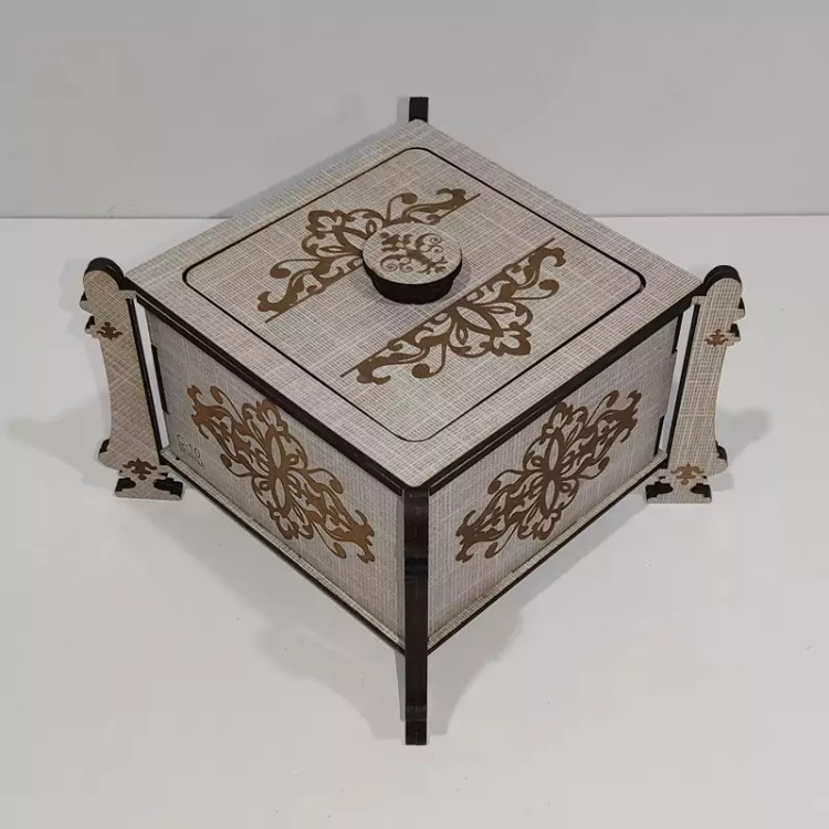 قندان (و جاشکلاتی و جا آبنباتی) چوبی مدل پایه دار با طرح اسلیمی با کد C-10