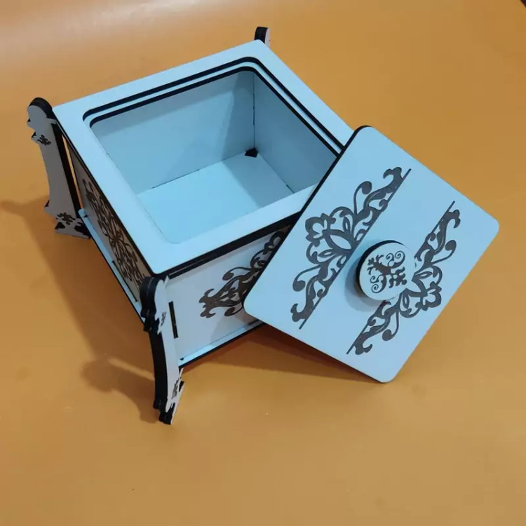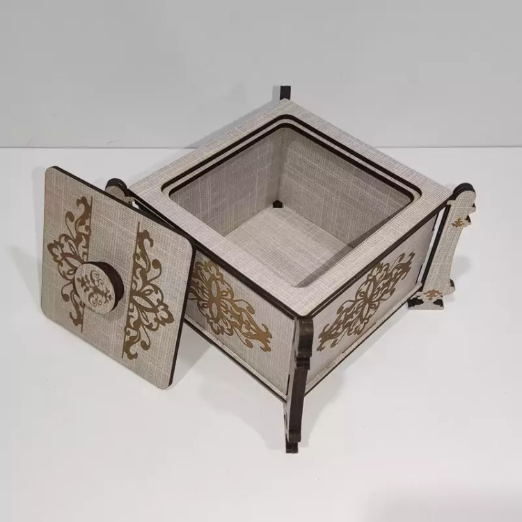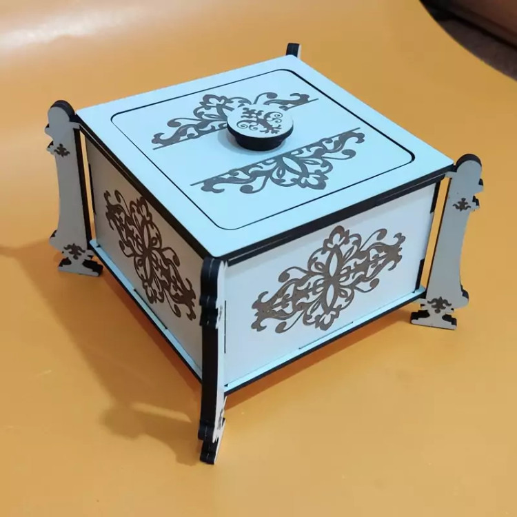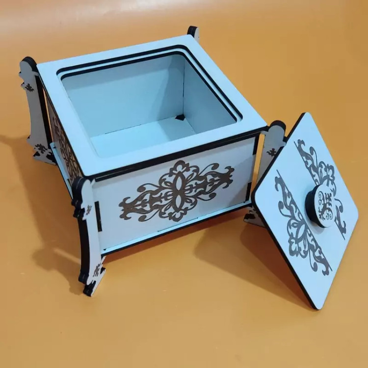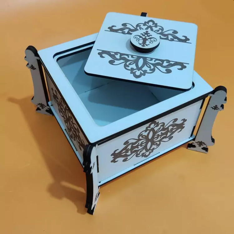 این قندان زیبا از جنس چوب ام دی اف ساخته شده است و بر روی دیواره ها و پایه و سر قندان حکاکی شده است قسمت پایه های قندان دولایه شده و مقاومت قندان بیشتر شده است این قنددان زیبا را میتوانید در میهمانی ها استفاده کنید