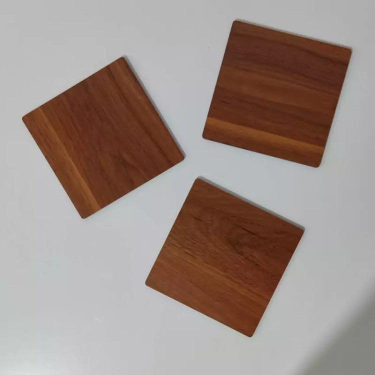 زیر لیوانی مربع طرح چوب رنگ قهوه ای روشن (فندوقی) بسته3عددی سایز9.5cm