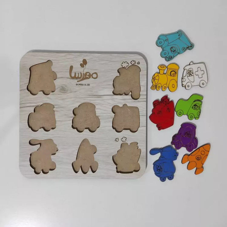 بازی آموزشی چوبی مدل جورچین طرح وسایل نقلیه کد k-39 رنگ (طرح چوب سفید) روشن