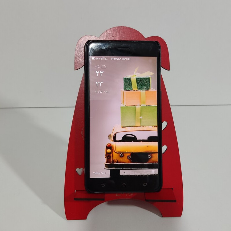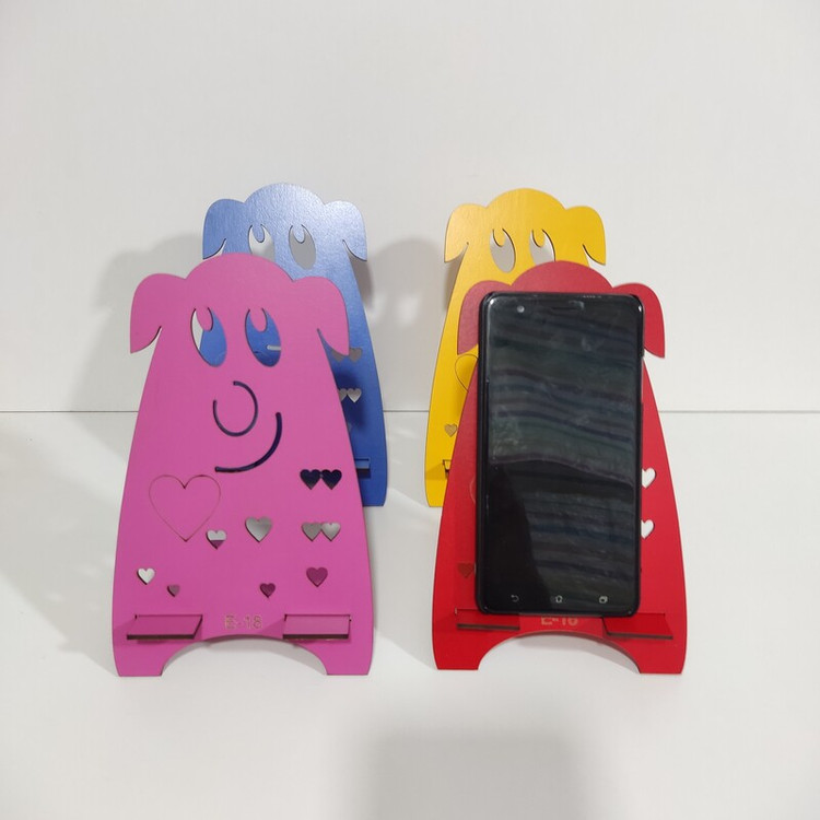 پایه چوبی نگهدارنده موبایل کدe-18 با طرح فانتزی و دارای رنگ بندی (جا موبایلی)