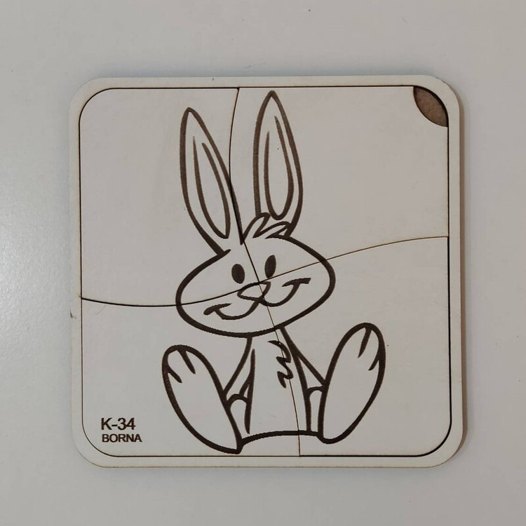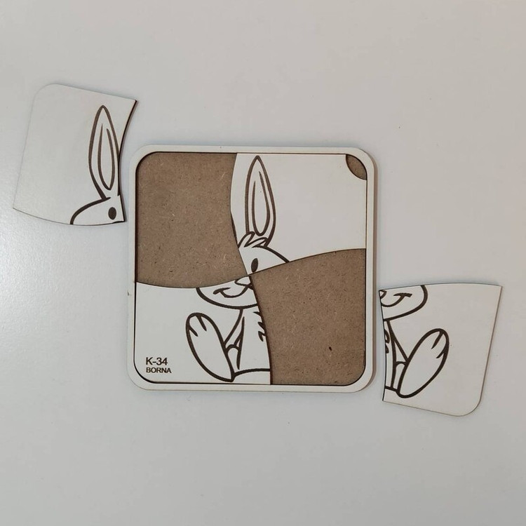 زیر لیوانی پازلی مربع شکل مدل خرگوش رنگ سفید