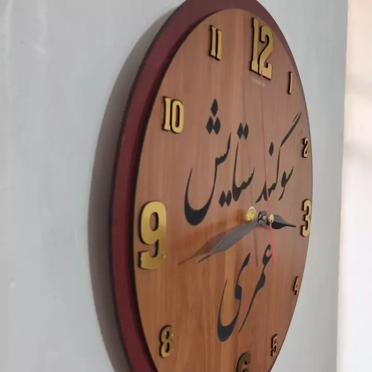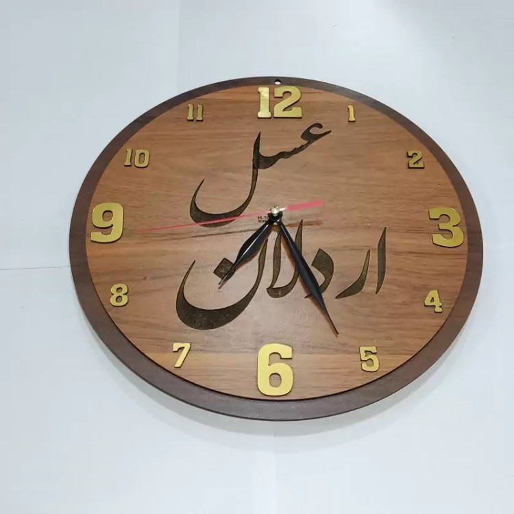 ساعت چوبی طرح اطلس با قابلیت حک اسم و متن دلخواه روی صفحه ساعت