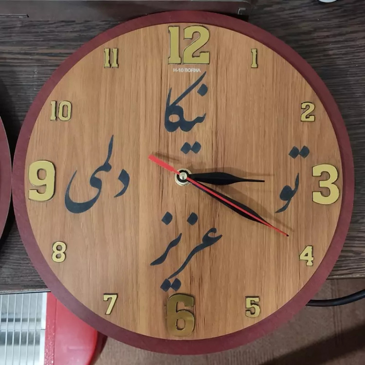 ساعت دیواری بسیار شیک و مناسب در محیط کار و منزل قابلیت حک شدن برند و یا نام کسب و کار و حتی اسم عزیزان شما قابلیت تغییر رنگ به انتخاب شما