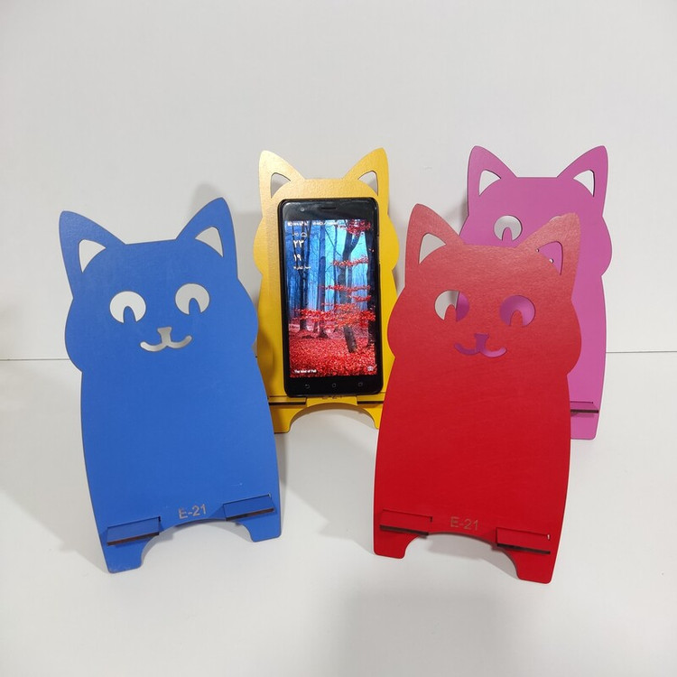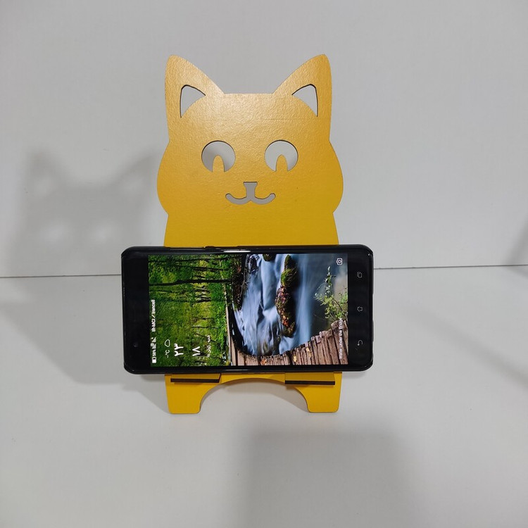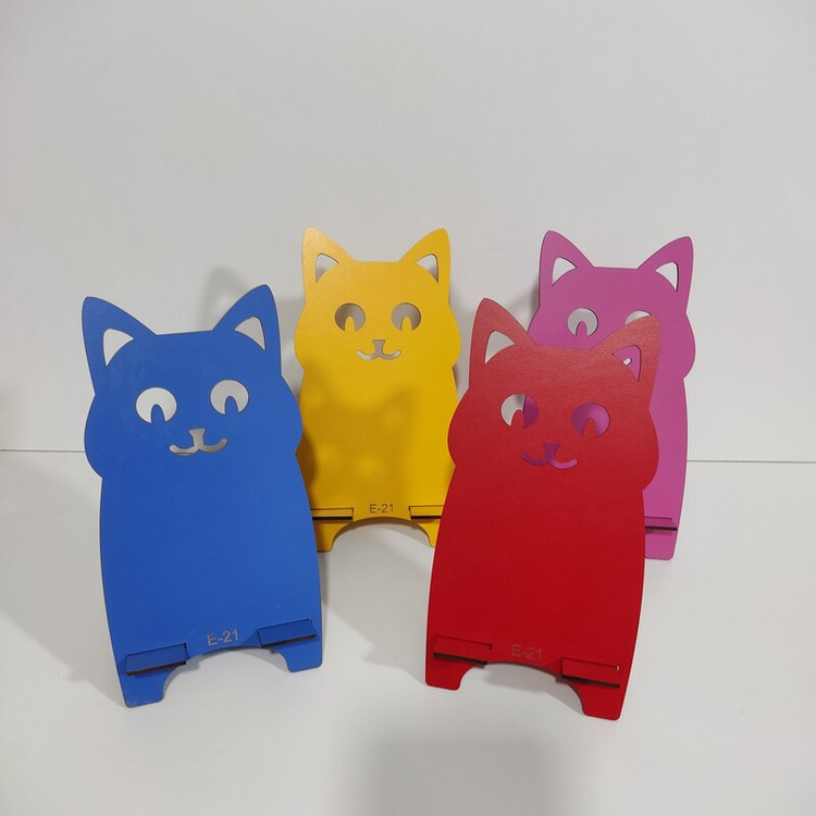پایه چوبی نگهدارنده موبایل کدe-21 با طرح فانتزی و دارای رنگ بندی (جا موبایلی)