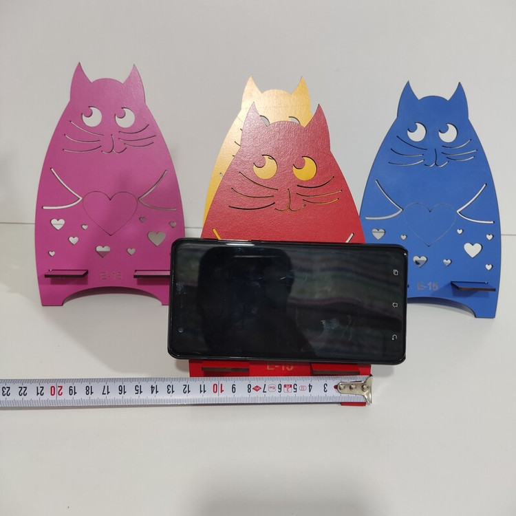 پایه چوبی نگهدارنده موبایل کدe-15 با طرح فانتزی و دارای رنگ بندی (جا موبایلی)