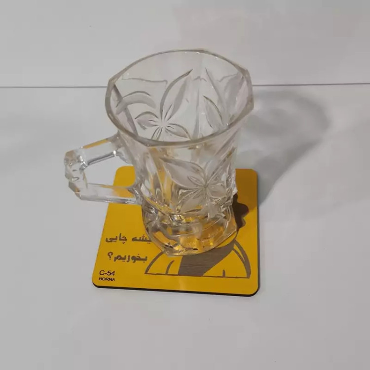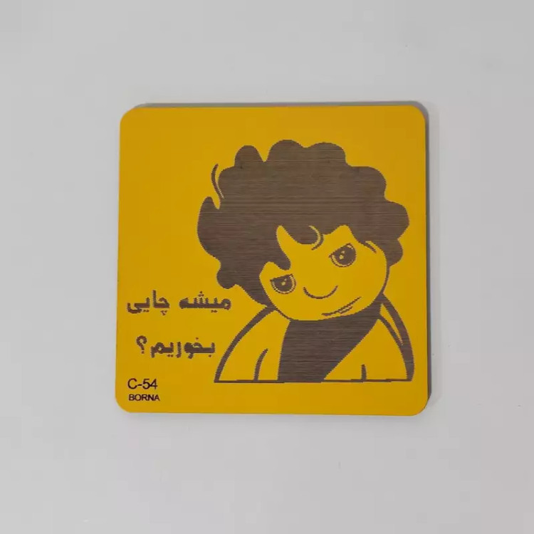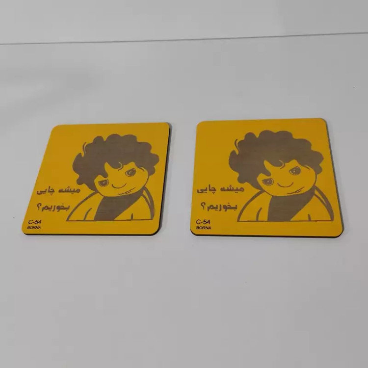 زیر لیوانی مربع مدل بچه (میشه چایی بخوریم) رنگ زرد بسته 2عددی