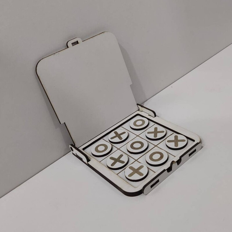 بازی ایکس او (X O) چوبی سفید رنگ با قابلیت حک تبلیغات و مناسب هدیه تبلیغاتی یا یادگاری نوشتن متن و جمله دلخواه رو درب محصول