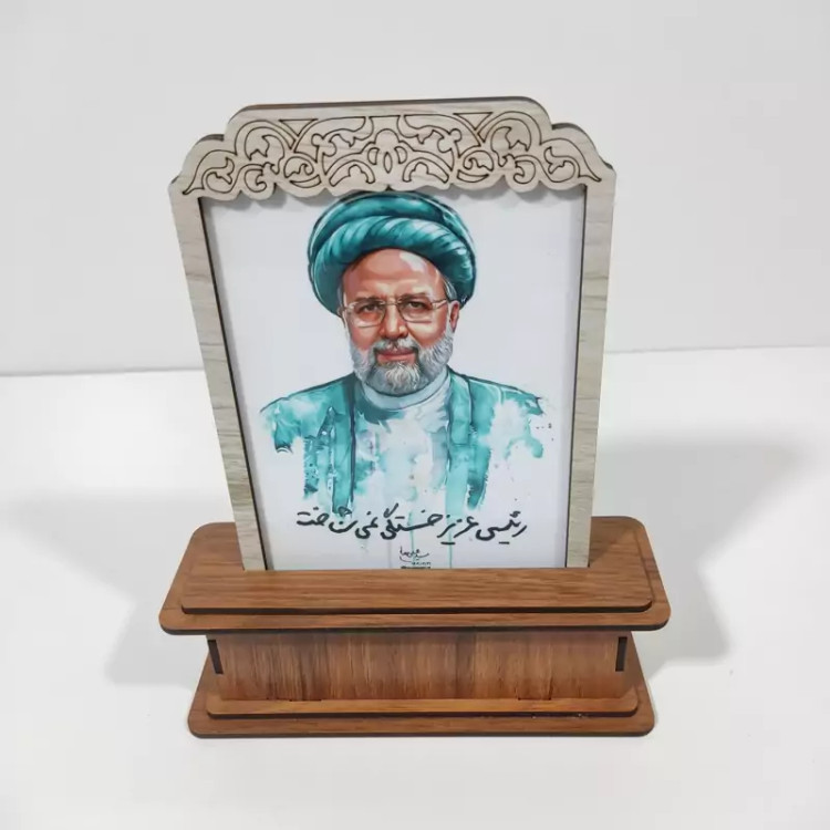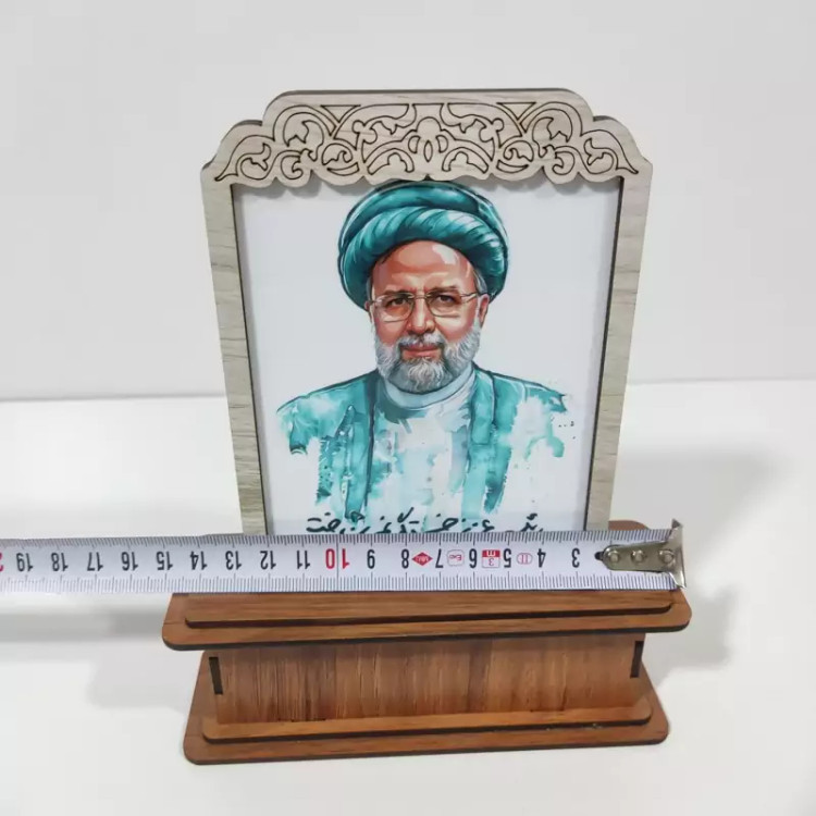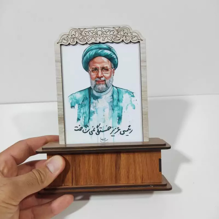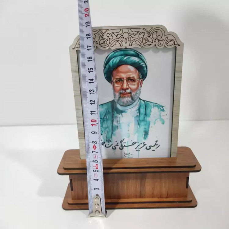 تندیس شهید رییسی ساخته شده با چوب mdf با ابعادی معمولی جهت استفاده روی میز کار، روی میز تلویزیون و حتی مناسب هدیه دادن