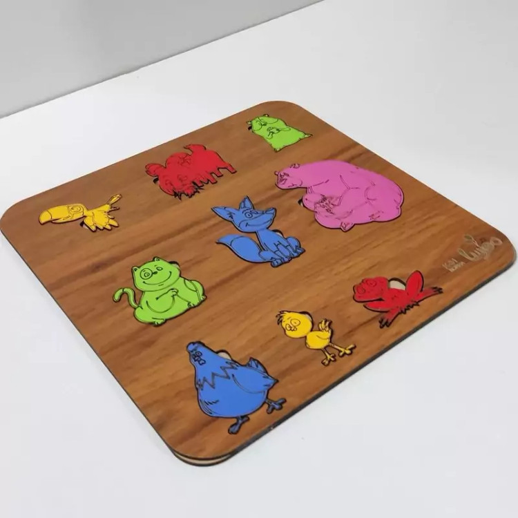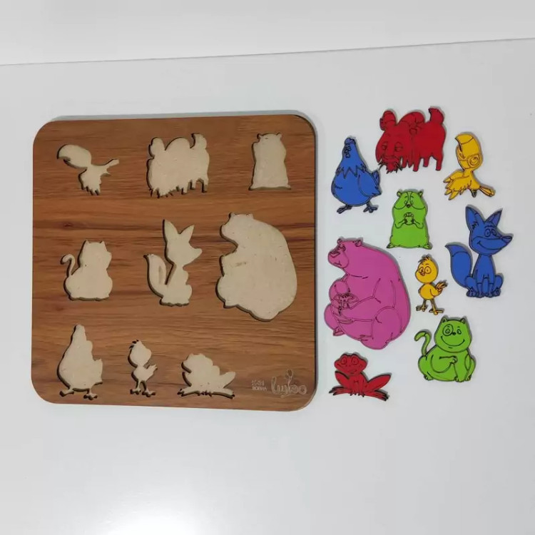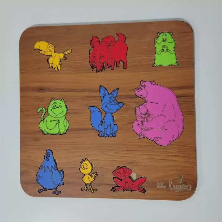 بازی آموزشی چوبی مدل جورچین حیوانات -رنگ طرح چوب (فندوقی)