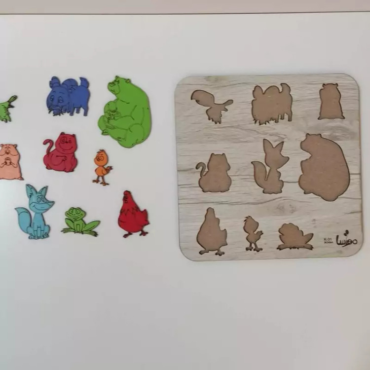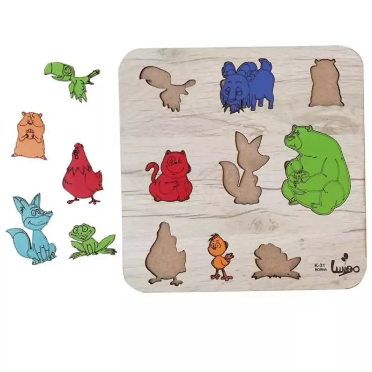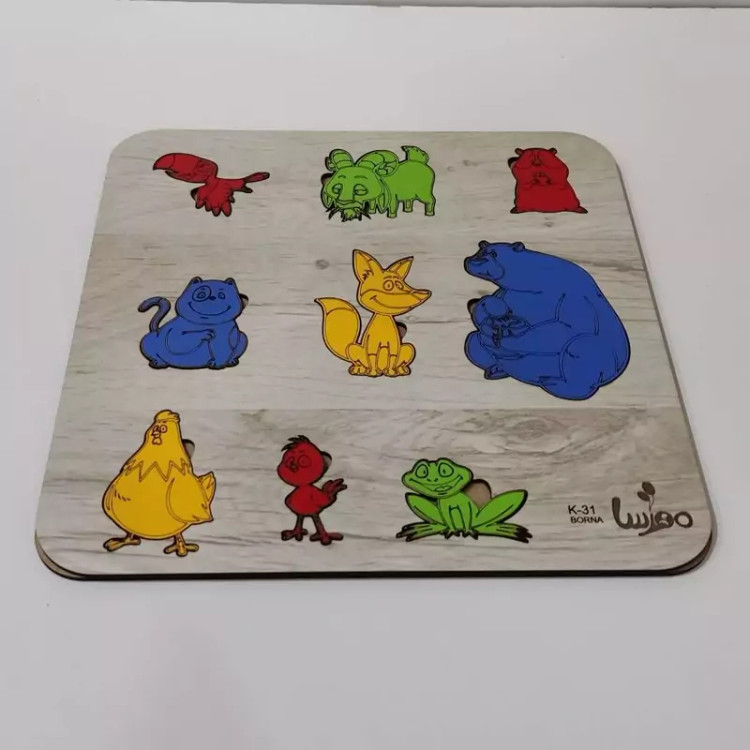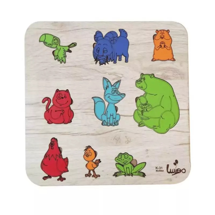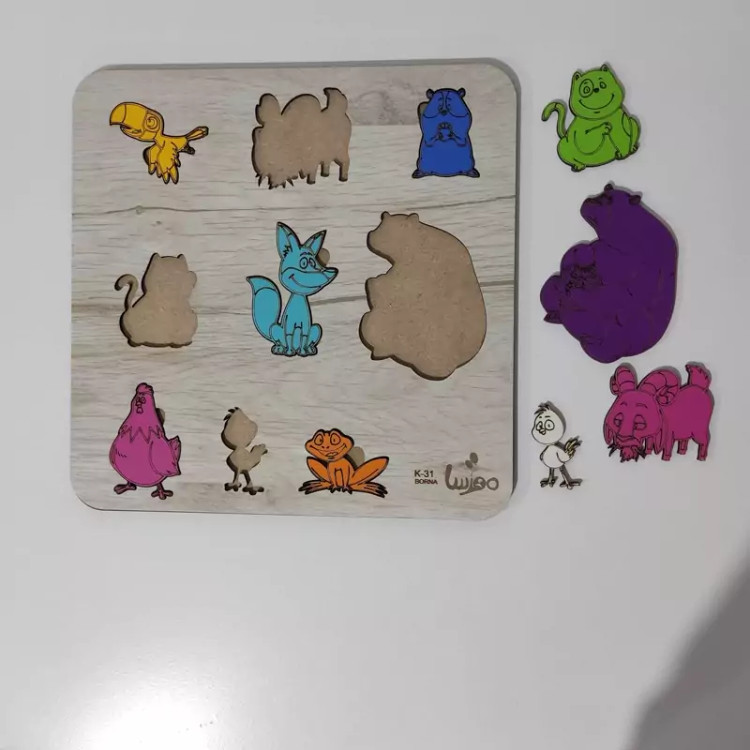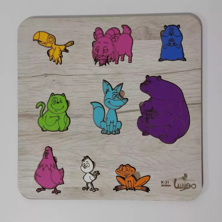 بازی آموزشی چوبی مدل جورچین حیوانات -رنگ طرح چوب (کاج)