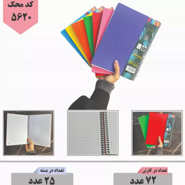 دفتر طلقی تک رنگ 50برگ و 100برگ دارای رنگبندی