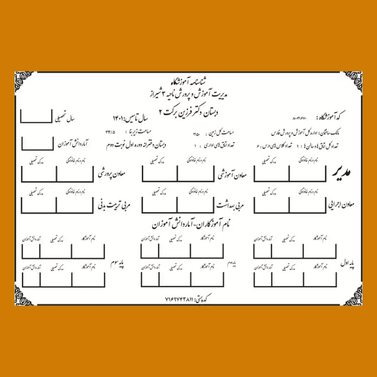 چارت سازمانی مدارس با ابعاد100در80سانتی متر با ضخامت 6میلی متر (چوب ام دی اف)
