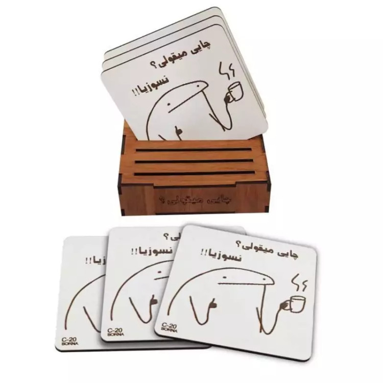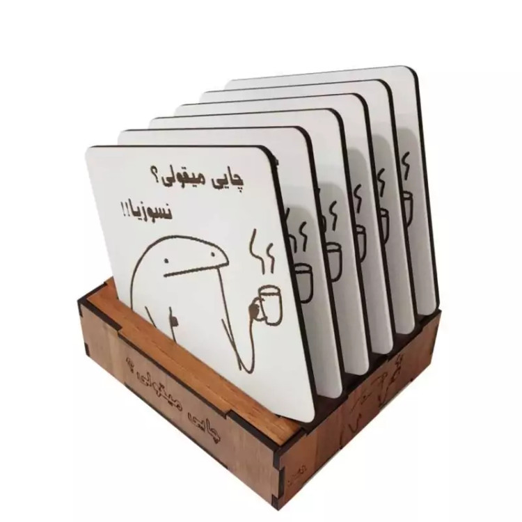 6عدد زیر لیوانی سفید رنگ به همراه جای زیر لیوانی با طرح چایی میقولی بسته 6عددی