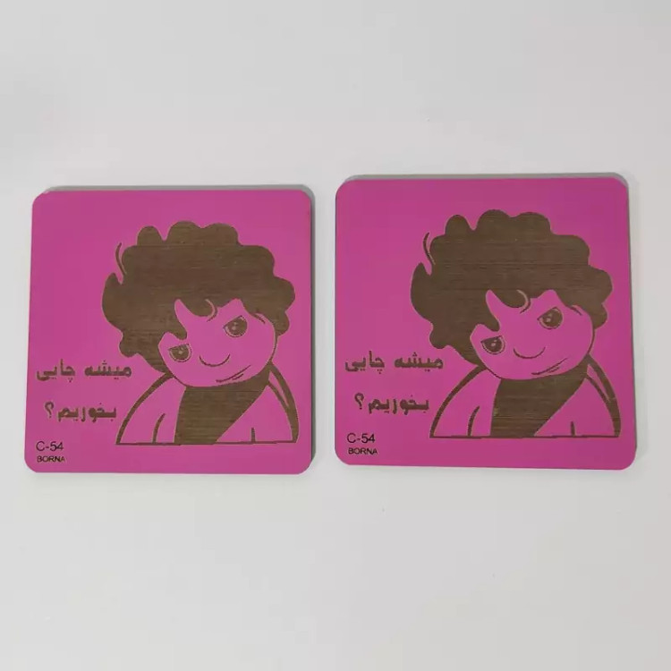 زیر لیوانی مربع مدل بچه (میشه چایی بخوریم) رنگ صورتی بسته 2عددی