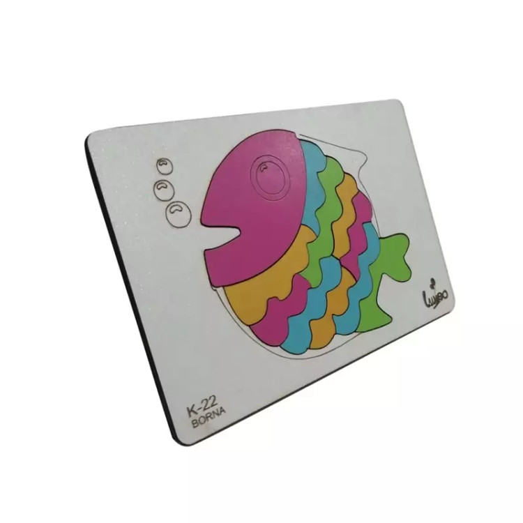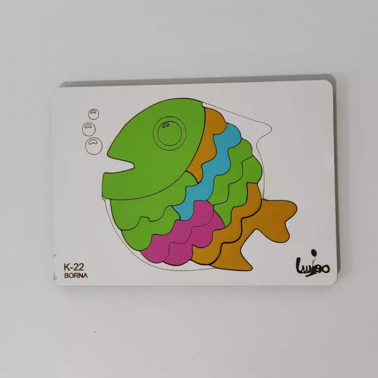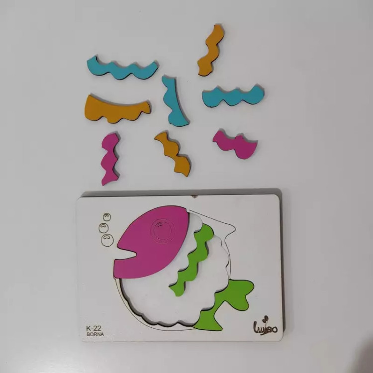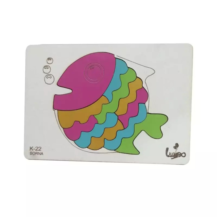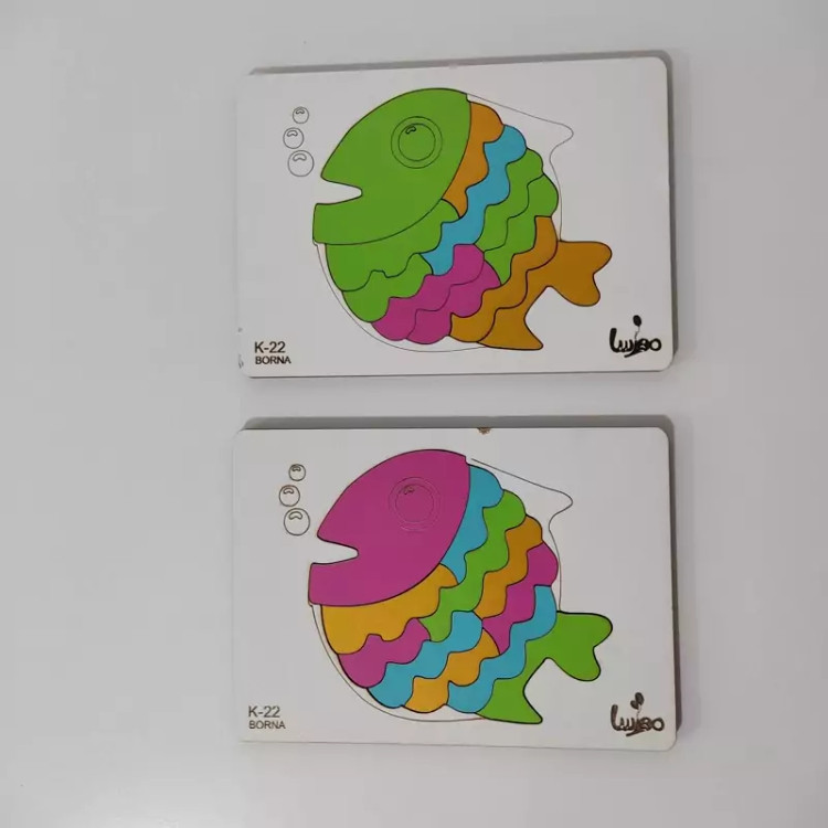 بازی پازل به شکل ماهی که میتواند برای کودکان جذاب باشند. این ماهی در قطعات به شکل پولک هایی که از رنگ های متنوع وشاد ترکیب شده است و همین نکته باعث میشود که گزینه ی خاصی برای فرزند شما باشد. و در کنار آن میتوانید رنگ ها را نیز به کودک خود آموزش دهید. ((لطفاً توجه داشته باشید که رنگ قطعه های پازل بصورت رندم میباشد و قابل انتخاب نیست))