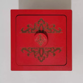 قندان کوچک در طراحی بسیار فوق العاده و زیبا دارای درب و در شکل مربع میباشد. این قندان دارای حکاکی های اسلیمی بسیار زیبا روی درب و روی دیواره قندان است. وجود قندان جلوه ای زیبایی به سینی شما میدهد.