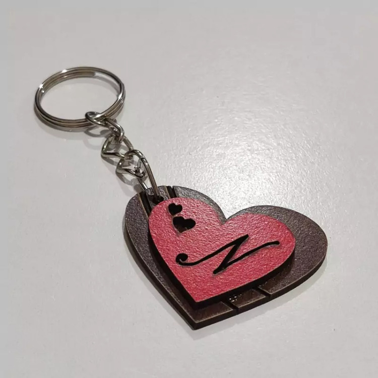 دست کلید چوبی (پاسوییچی) قلبی شکل با اسم و حروف انگلیسی و رنگبندی دلخواه