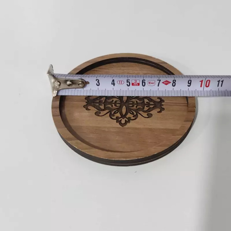 این زیر لیوانی چوبی با حک زیبا طرح در کف و دو لایه دیواره برای قرار گیری مناسب ماگ و لیوان میباشد جنش زیر لیوانی چوبی با جنس ام دی اف است و از دولایه دیواره و یک لایه کفی تشکیل شده است از این زیر لیوانی میتوان در میهمانی ها در منازل ،محل کار، ادارات ،هتل ها ، کافه ها استفاده کرد.