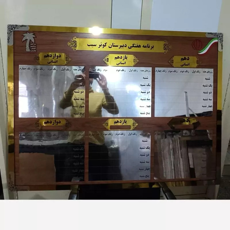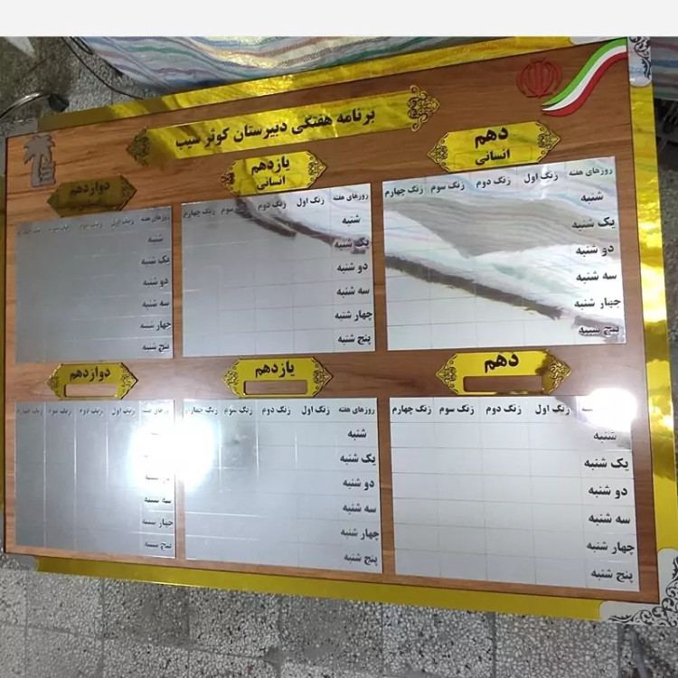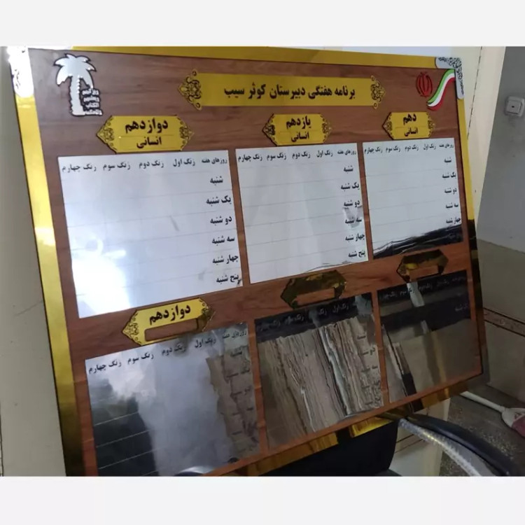 تابلو چارت سازمانی (برنامه کلاسی) سفارشی با حک دلخواه