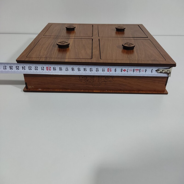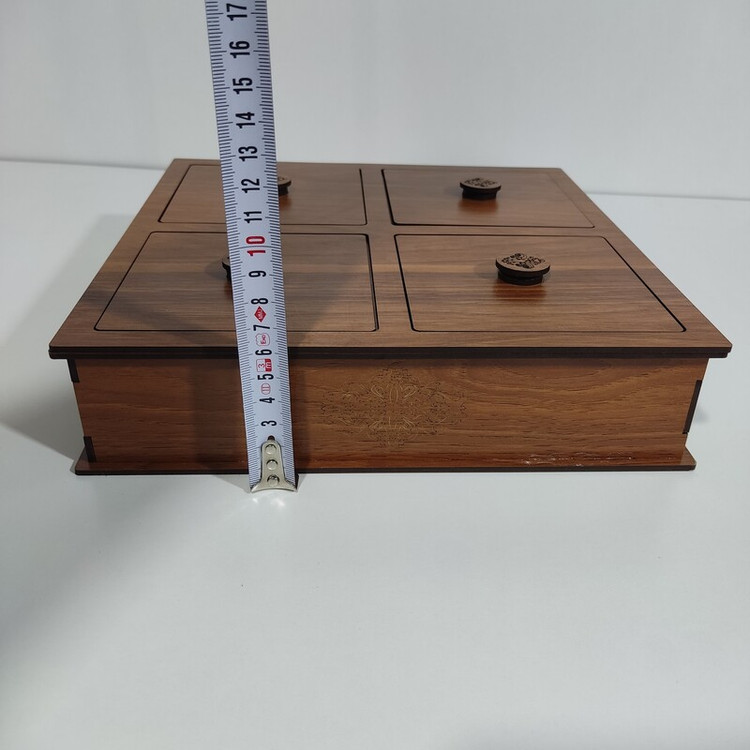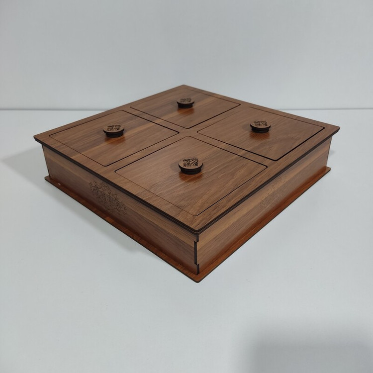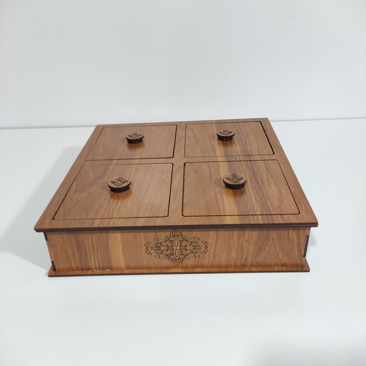 آجیل خوری 4 قسمتی با طرح اسلیمی همراه با درب چوبی ام دی اف 3 میل (جعبه خشکبار)