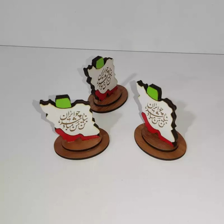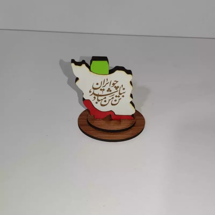 مینی استند تبلیغاتی رومیزی نقشه ایران چوبی - با حک دلخواه در پشت نقشه