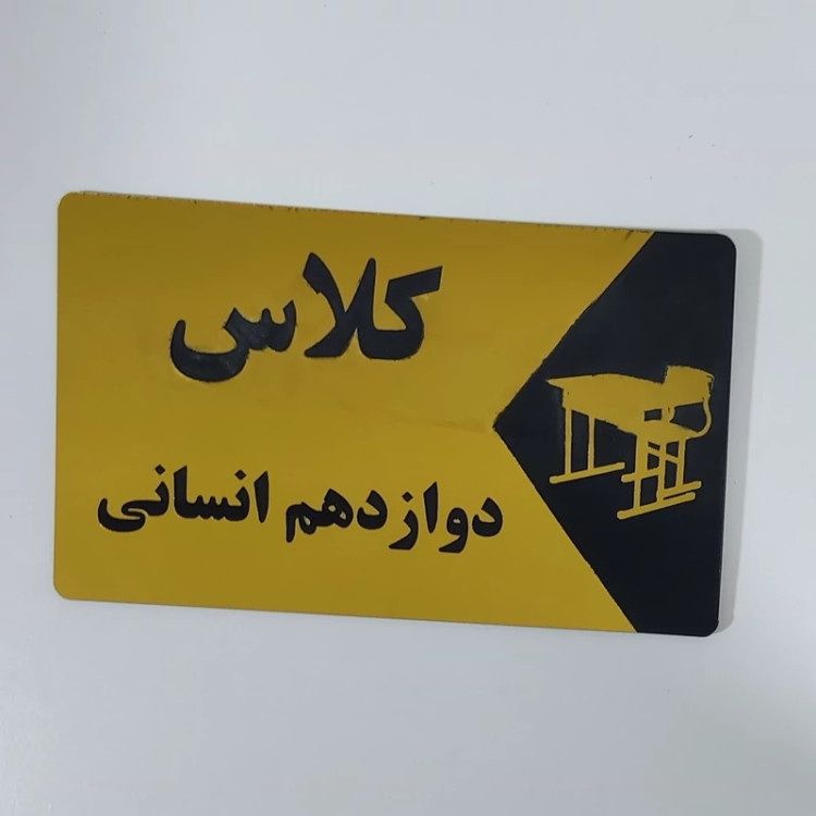 تابلو ی نام مکان (1عدد) به انتخاب شما (کلاس،سالن،آبدارخانه،چهارم،پیش دبستانی، مدیریت و...)