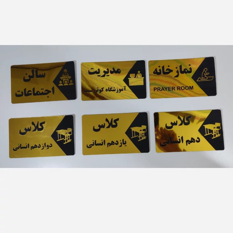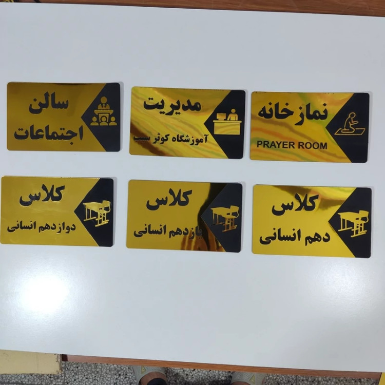 تابلو ی نام مکان ها رنگ طلایی تکی (1عدد) به انتخاب شما (کلاس،سالن،آبدارخانه،چهارم،پیش دبستانی، مدیریت و...)