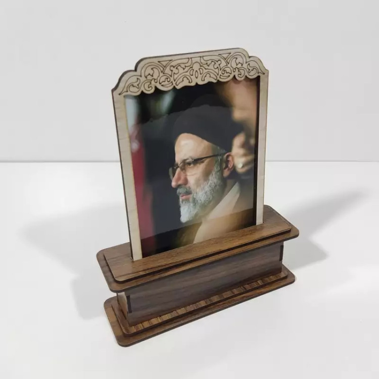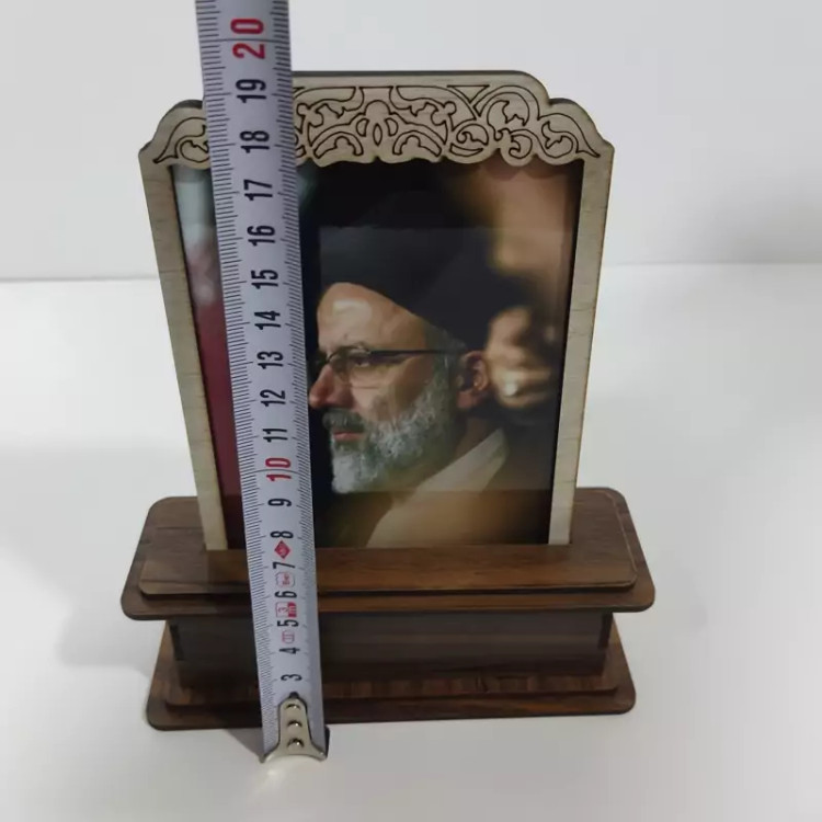 تندیس شهید رییسی ساخته شده با چوب mdf با ابعادی معمولی جهت استفاده روی میز کار، روی میز تلویزیون و حتی مناسب هدیه دادن