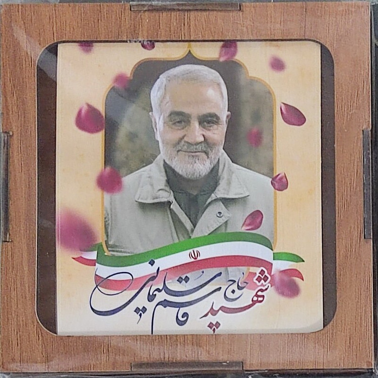 قاب عکس چوبی سردار شهید حاج قاسم سلیمانی - 13در13سانتی متر