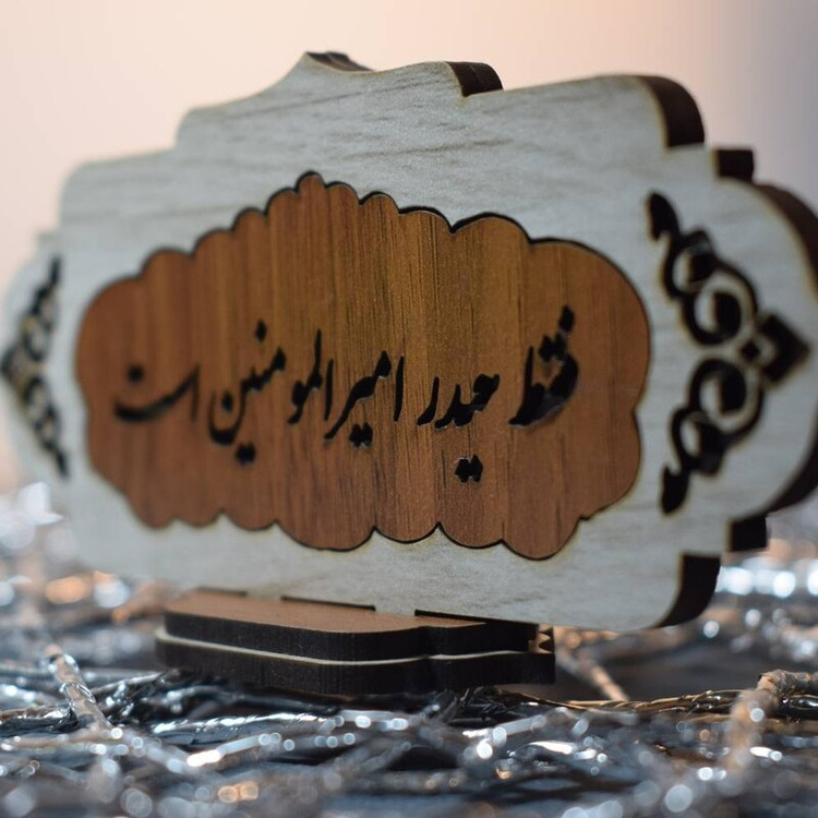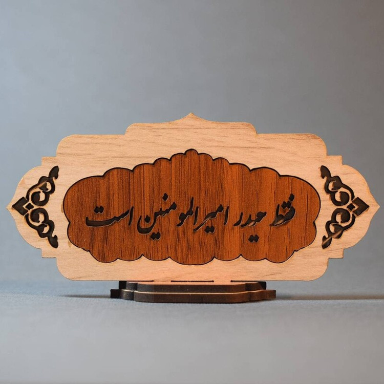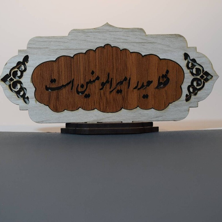 استند رومیزی کوچک زیبا منقش به متن مبارک ( فقط حیدر امیرالمومنین است) با رنگ بندی متنوع