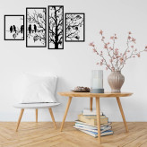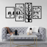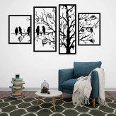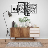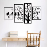 دیوار کوب چوبی سالنی 4 تیکه طرح درخت و پرنده با ابعاد 120 در 65 سانتی متر