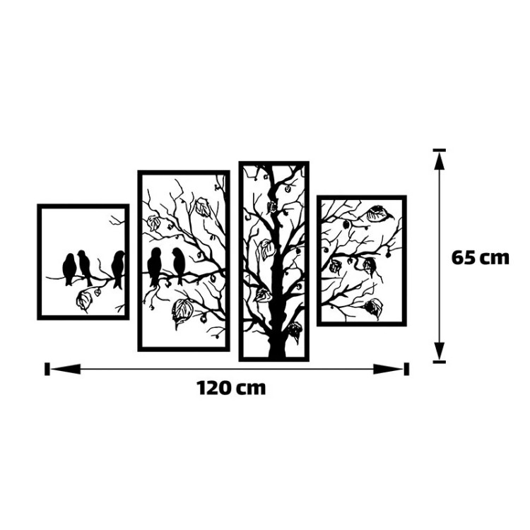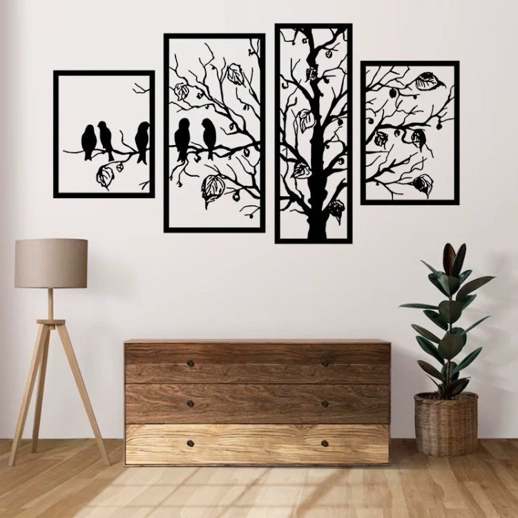 دیوار کوب چوبی سالنی 4 تیکه طرح درخت و پرنده با ابعاد 120 در 65 سانتی متر