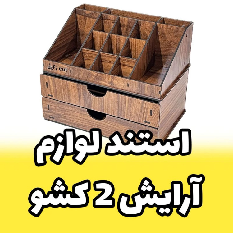 استند لوازم آرایش چوبی رومیزی دارای دو کشو جای لوازم آرایش نظم دهنده کد F-24