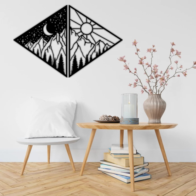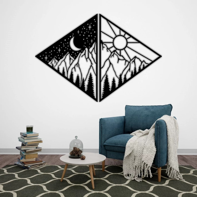 دیوار کوب چوبی و استیکر دیواری مخصوص دکوراسیون داخلی اتاق طرح شب و روز
