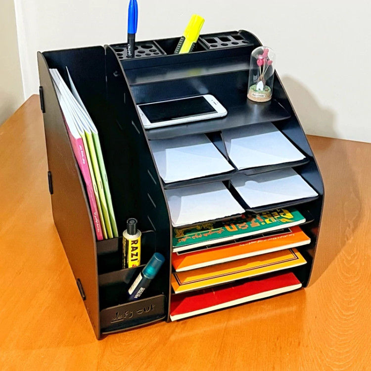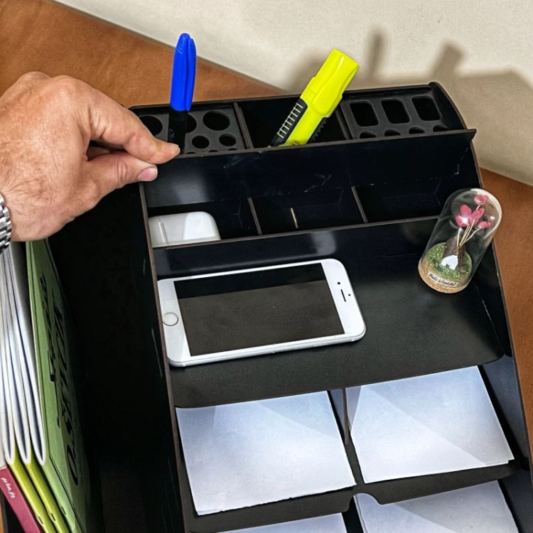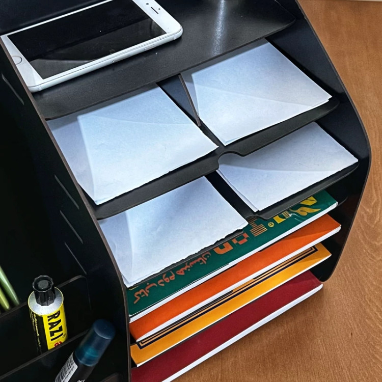 کازیه چوبی هفت طبقه مناسب برای محصلها و دانشآموزان، با طراحی خاص و جادار، انتخابی عالی برای نظمدهی به لوازم تحریر و وسایل شخصی است. این محصول با استفاده از چوب MDF سه میل ساخته شده که از دوام و کیفیت بالایی برخوردار است. با داشتن درب کوچکی در بالای آن، امکان نگهداری اشیاء کوچک بهصورت ایمن فراهم شده است. همچنین، بخش بالایی کازیه دارای جای مخصوص برای مداد، خودکار و سایر لوازم نوشتافزار است که به راحتی در دسترس باشند. این کازیه چوبی با طراحی زیبا و مدرن، علاوه بر کارایی، به دکوراسیون میز تحریر شما جلوهای ویژه میبخشد. هفت طبقهی جادار آن به شما امکان مرتبسازی کتابها، دفترها و سایر وسایل مورد نیازتان را میدهد. با داشتن این کازیه، همیشه همه چیز مرتب و در دسترس خواهد بود، که به ویژه برای دانشآموزان و محصلان که نیاز به سازماندهی بهتر دارند، بسیار مفید است. استفاده از مواد با کیفیت و طراحی دقیق، این کازیه را به محصولی متمایز تبدیل کرده است. این محصول علاوه بر کارایی بالا، دوام و استحکام مناسبی دارد و میتواند سالها در خدمت شما باشد. با انتخاب این کازیه چوبی هفت طبقه، نه تنها به نظم و ترتیب محیط کاری خود کمک میکنید، بلکه از زیبایی و کیفیت بالای آن نیز بهرهمند میشوید.