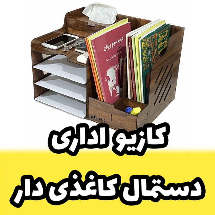 کازیو اداری - کازیه اداری و جای ورق و پوشه و جزوه چوبی طرح دستمال کاغذی دار کد D-79