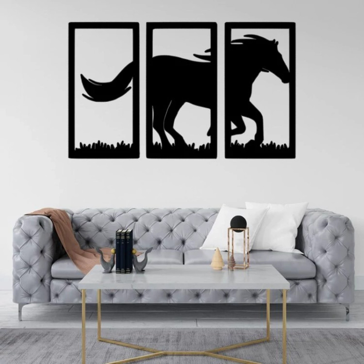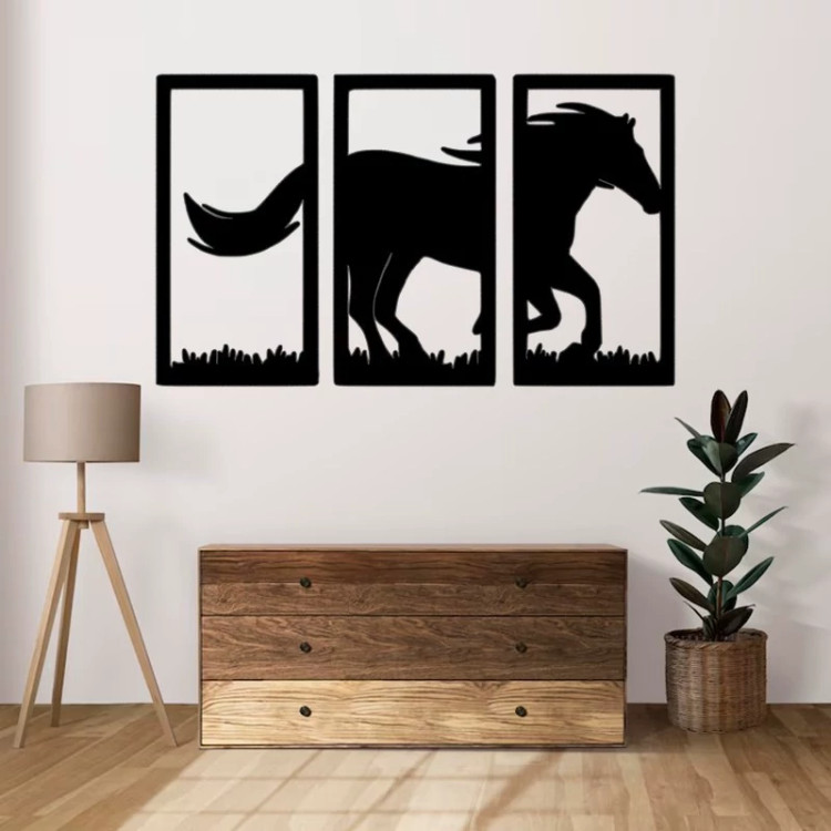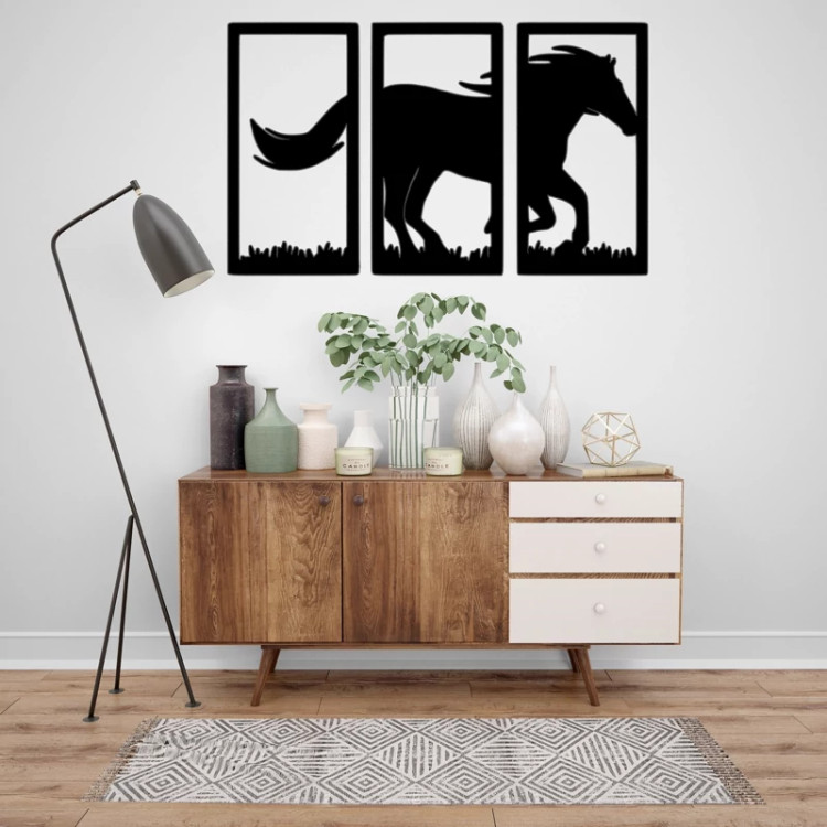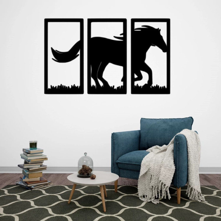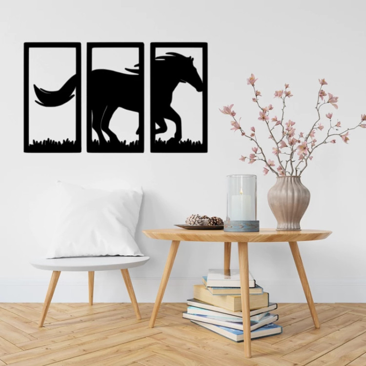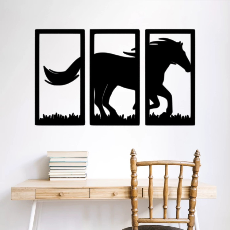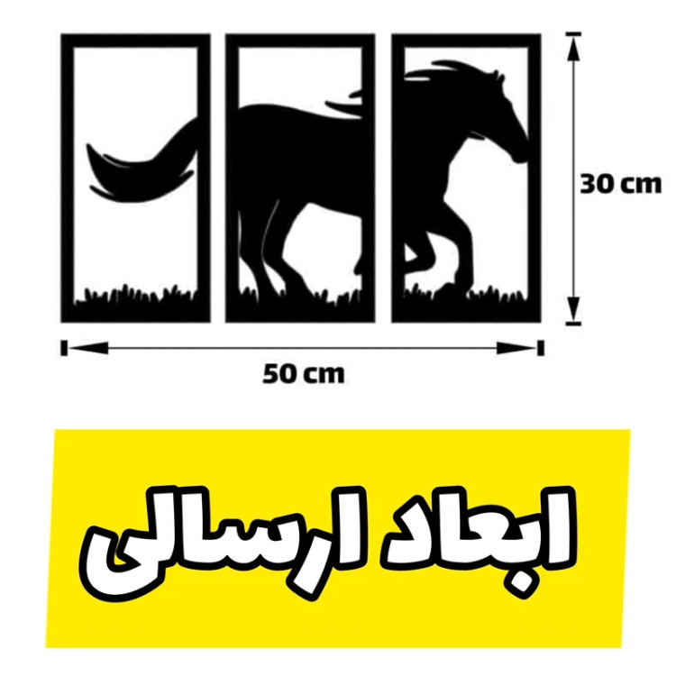 دیوارکوب چوبی طرح اسب مدل سه تیکه با ابعاد 30 در 50 سانتی متر - استیکر چوبی سوارکاری