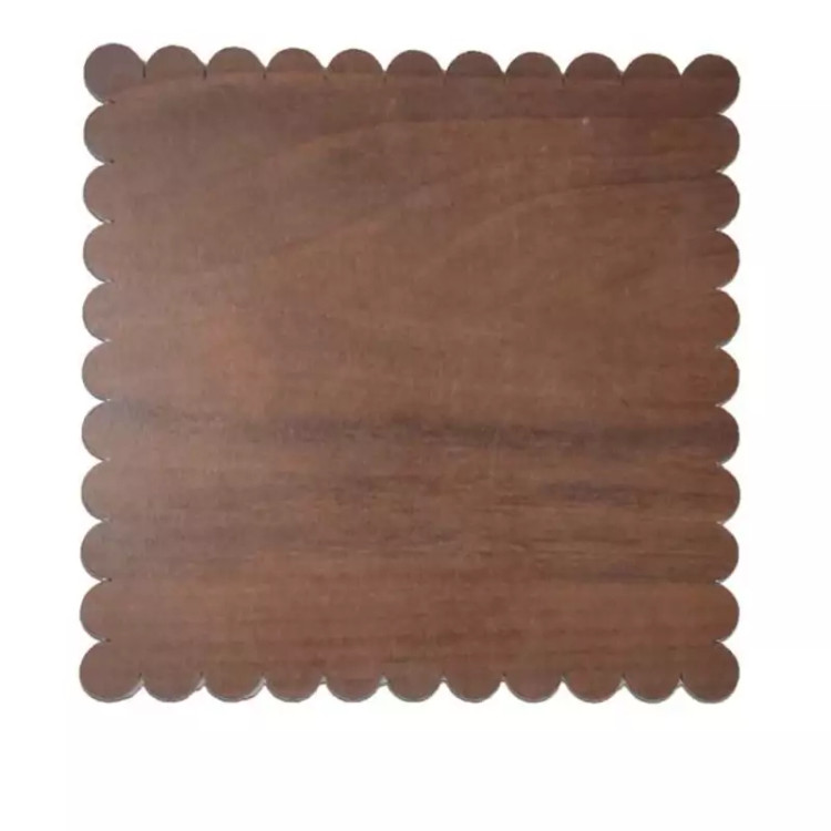زیر کیکی چوبی مربعی با دوربری دالبری بسیار شیک و زیباست و میتوانید از آن بعنوان زیردیگی و زیردستی نیز استفاده نمایید.