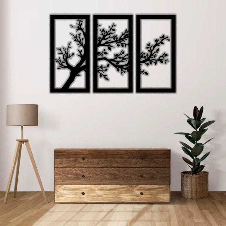 دیوارکوب چوبی 3 تیکه طرح درخت مدل استیکر دیواری دکوراتیو منزل ابعاد 63 در 39 سانتی متر