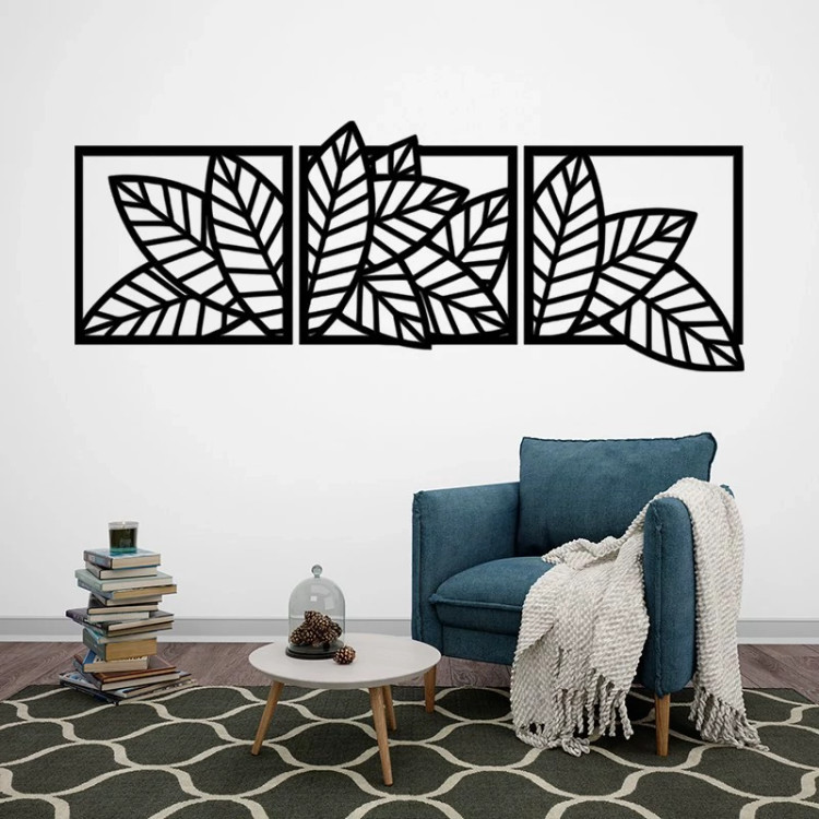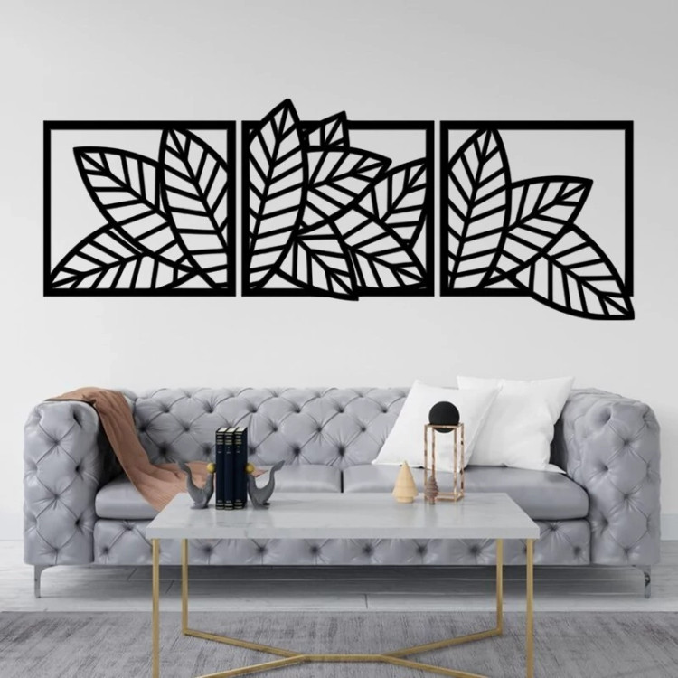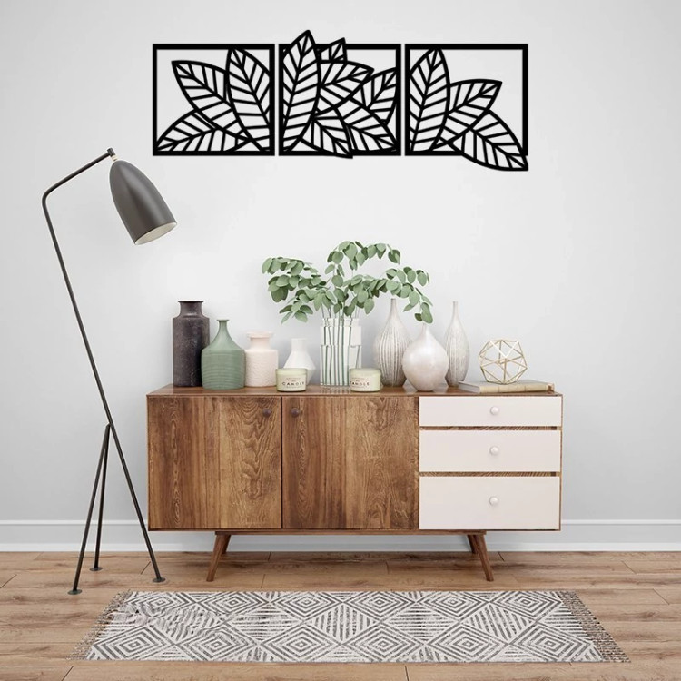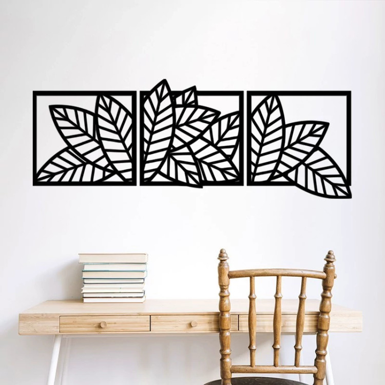 دیوار کوب سه تیکه چوبی طرح برگ گیاه و گل - ابعاد 120 در 45 سانتی متر