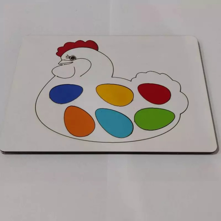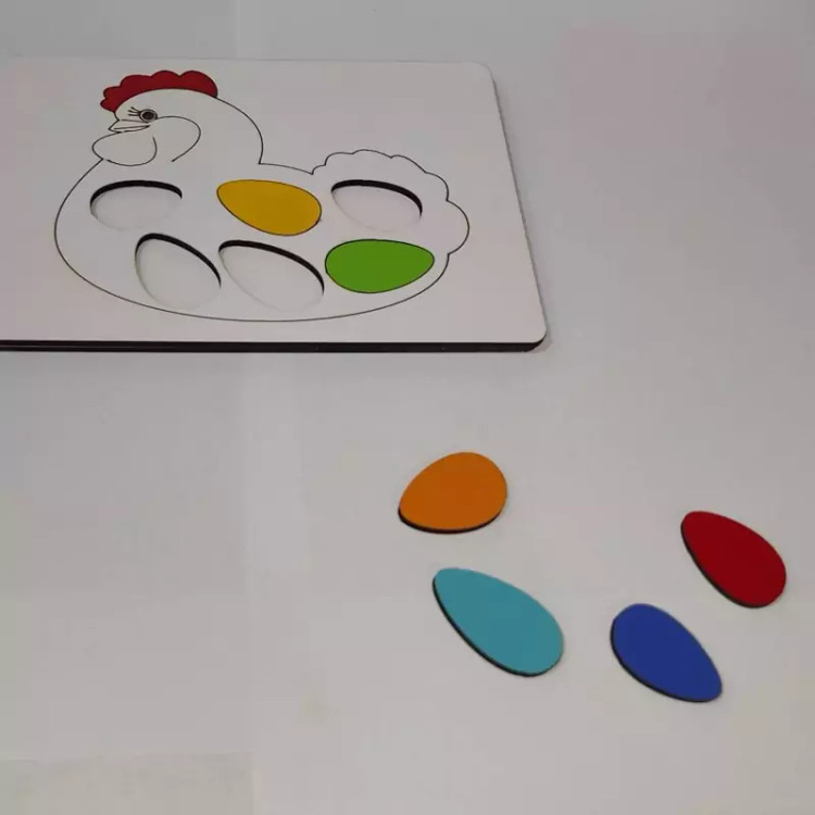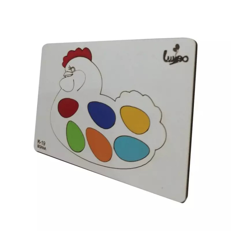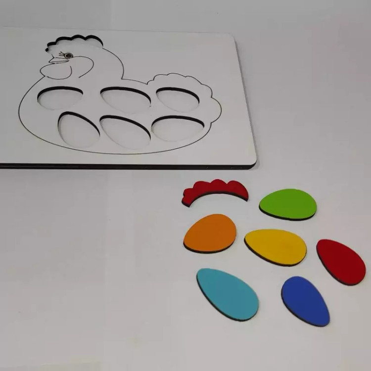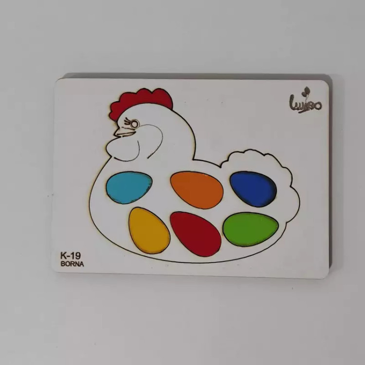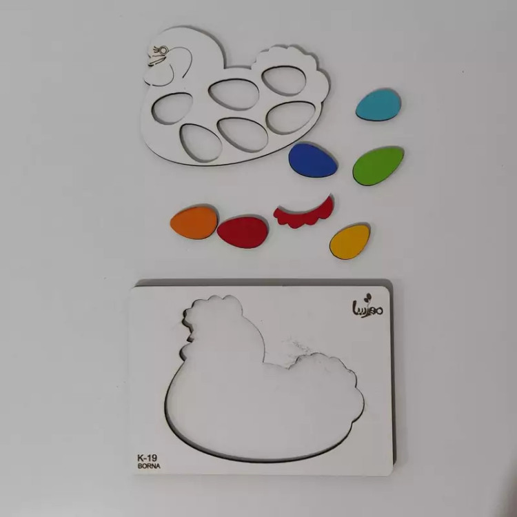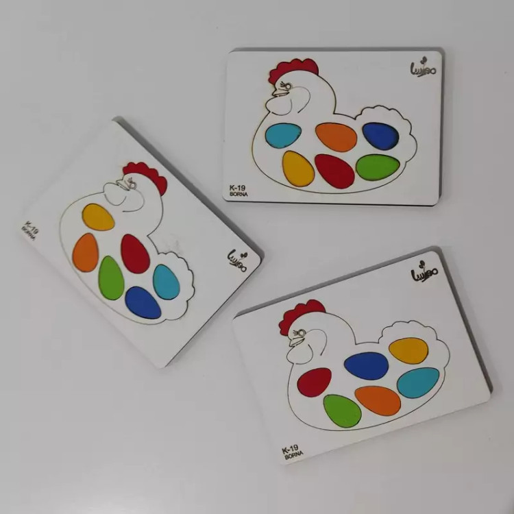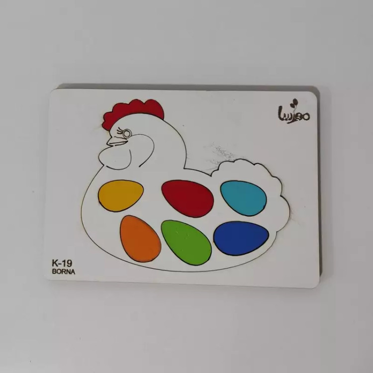 بازی آموزشی پازل به شکل مرغ که بسیار جالب و زیبا است و این بازی مناسب کودکان میباشد. نکته بسیار جذابی که وجود داره اینه که در پازل قطعات تخم وجود دارد که کودکان شما آنها را در سایز های مختلف میتوانند بچینند. و در کنار آن میتوانید رنگ ها را نیز به کودک خود آموزش دهید. ((لطفاً توجه داشته باشید که رنگ قطعه های پازل بصورت رندم میباشد و قابل انتخاب نیست)))