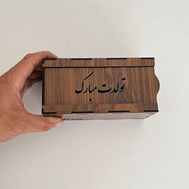 جعبه هدیه چوبی طرح تولد مبارک