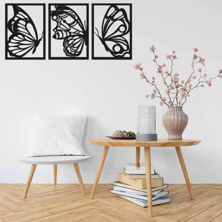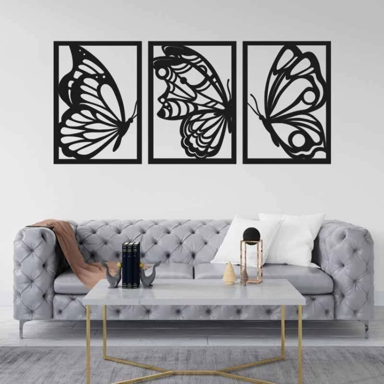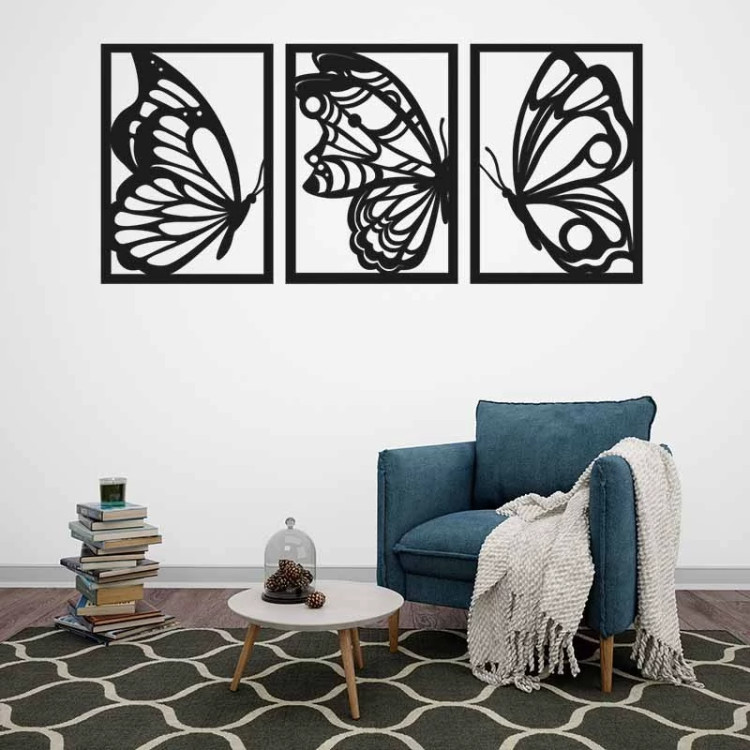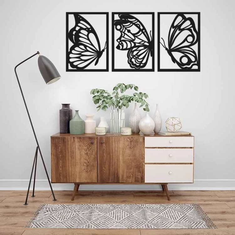 دیوارکوب چوبی سالنی سه تیکه طرح پروانه ابعاد 129 در 60 سانتی متر