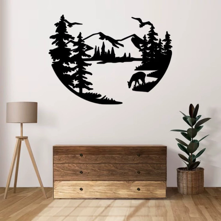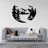 دیوارکوب چوبی طرح منظره و طبیعت و عقاب - استیکر چوبی دیواری ابعاد 40 در 29 سانتی متر