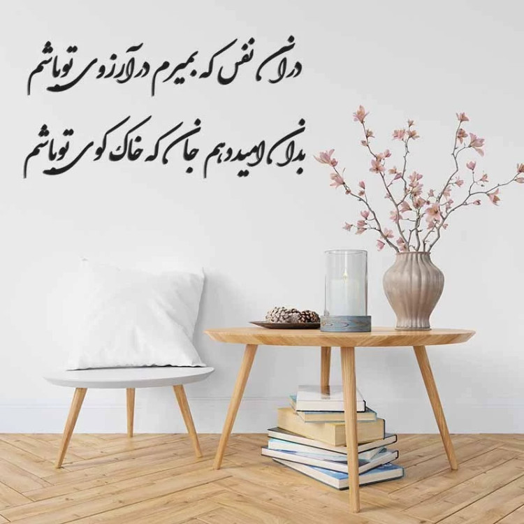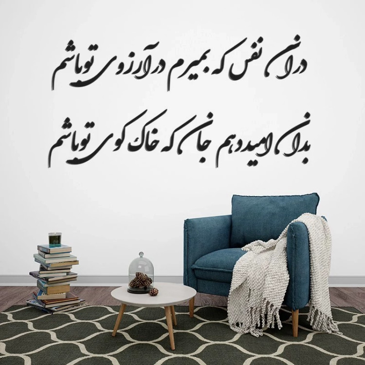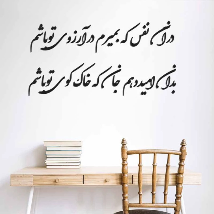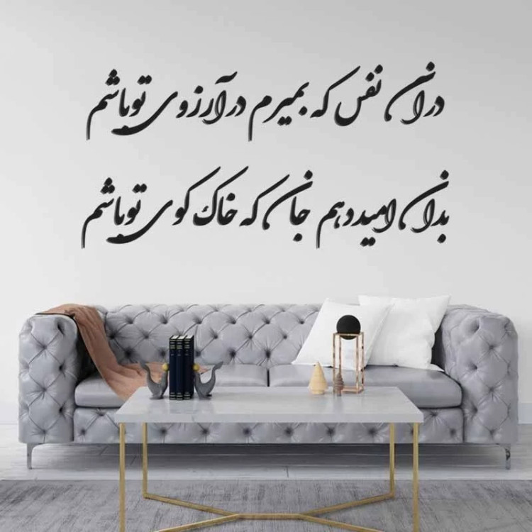 دیوارکوب چوبی حروف برجسته شعر «در آن نفس که بمیرم...» | نصب با چسب دوطرفه | 65×33 سانتیمتر 🖤🪵 اگر دنبال یک دکوری احساسی و متفاوت برای خانه، اتاق خواب یا فضای شخصیتان هستید، این دیوارکوب چوبی با طراحی خاص حروف برجسته و شعر کلاسیک فارسی، انتخابی بینظیر برای شماست. عبارت دلنشین و عاشقانه «در آن نفس که بمیرم، در آرزوی تو باشم / بدان امید دهم جان، که خاک کوی تو باشم» از لسانالغیب حافظ، حالا در قالب یک دیوارکوب مدرن و سهبعدی روی دیوار خانهتان مینشیند. 📝 ویژگیها: شعر: حافظ نوع نصب: فقط با چسب دوطرفه (داخل بسته قرار دارد) جنس: MDF سه میل ابعاد کلی پس از نصب: 65 در 33 سانتیمتر نوع طراحی: حروف جداگانه و برجسته، مناسب نصب مستقیم روی دیوار رنگ: مشکی مات (رنگهای دیگر در صورت سفارش عمده) ✨ چرا این دیوارکوب خاص است؟ 🔹 حروف جدا و برجسته: در این محصول خبری از چاپ یا حکاکی روی صفحه نیست. هر کلمه و حرف با دقت لیزری از چوب MDF برش خورده و به صورت مجزا در بستهبندی قرار دارد. 🔹 نصب بسیار آسان: نیازی به هیچ ابزار یا سوراخکاری نیست! با استفاده از چسب دوطرفهی داخل بسته، بهراحتی حروف را روی دیوار میچسبانید. هم برای خانه اجارهای مناسبه، هم برای کسانی که نمیخوان دیوارشون آسیب ببینه. 🔹 احساس سهبعدی روی دیوار: با نصب مجزای حروف، دیوار شما حالتی برجسته، هنری و خاص پیدا میکنه. این سبک از دکور، مدرن و در عین حال شاعرانهست. 🔹 کاملاً سبک و جابجاییپذیر: به دلیل وزن پایین و ابعاد مناسب، میتونید حتی محل تابلو رو تغییر بدید، یا ازش در محیطهای مختلفی مثل اتاق خواب، دفتر کار یا کافه استفاده کنید. 🛋️ مناسب برای: اتاق خواب یا فضای شخصی دیوار کنار تخت یا میز دفترهای کار هنری فضاهای مینیمال با تم مشکی یا چوبی
