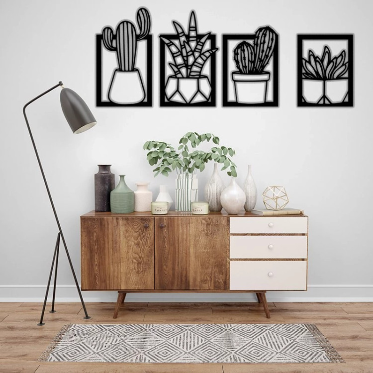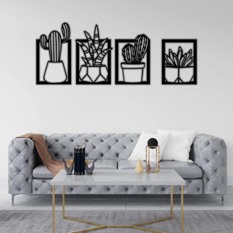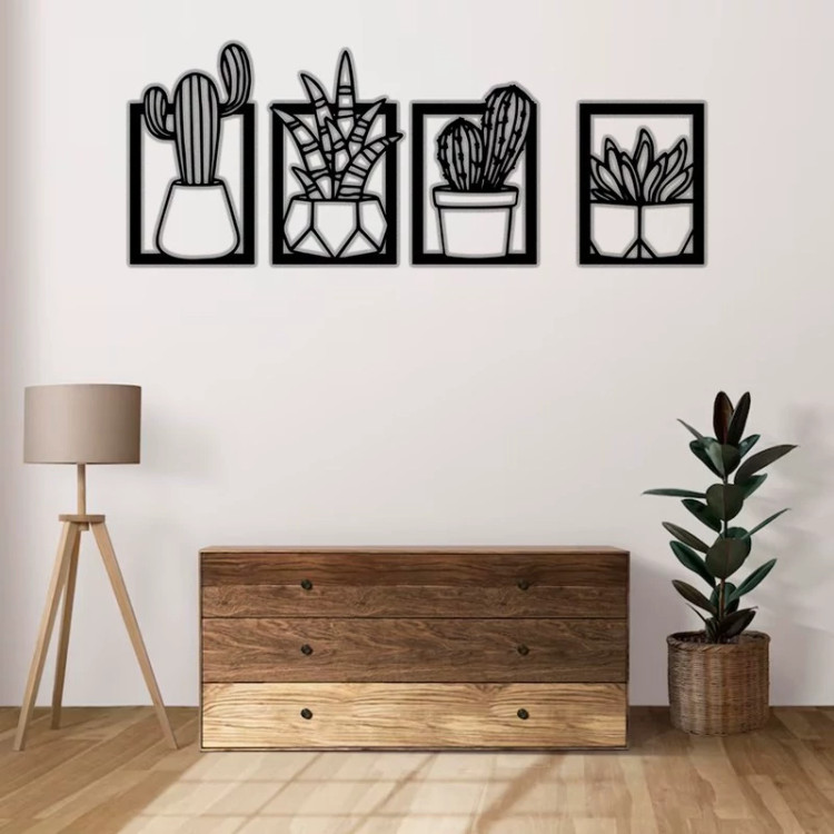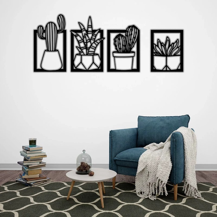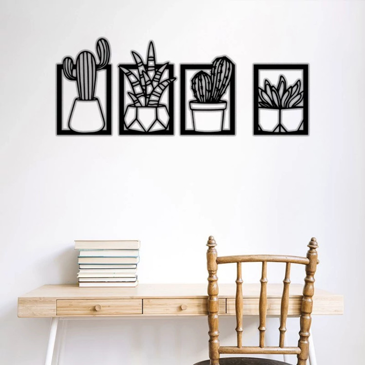 دیوارکوب مدل کاکتوس مجموعه 4 عددی - استیکر دیواری چوبی مخصوص سالن و پذیرایی